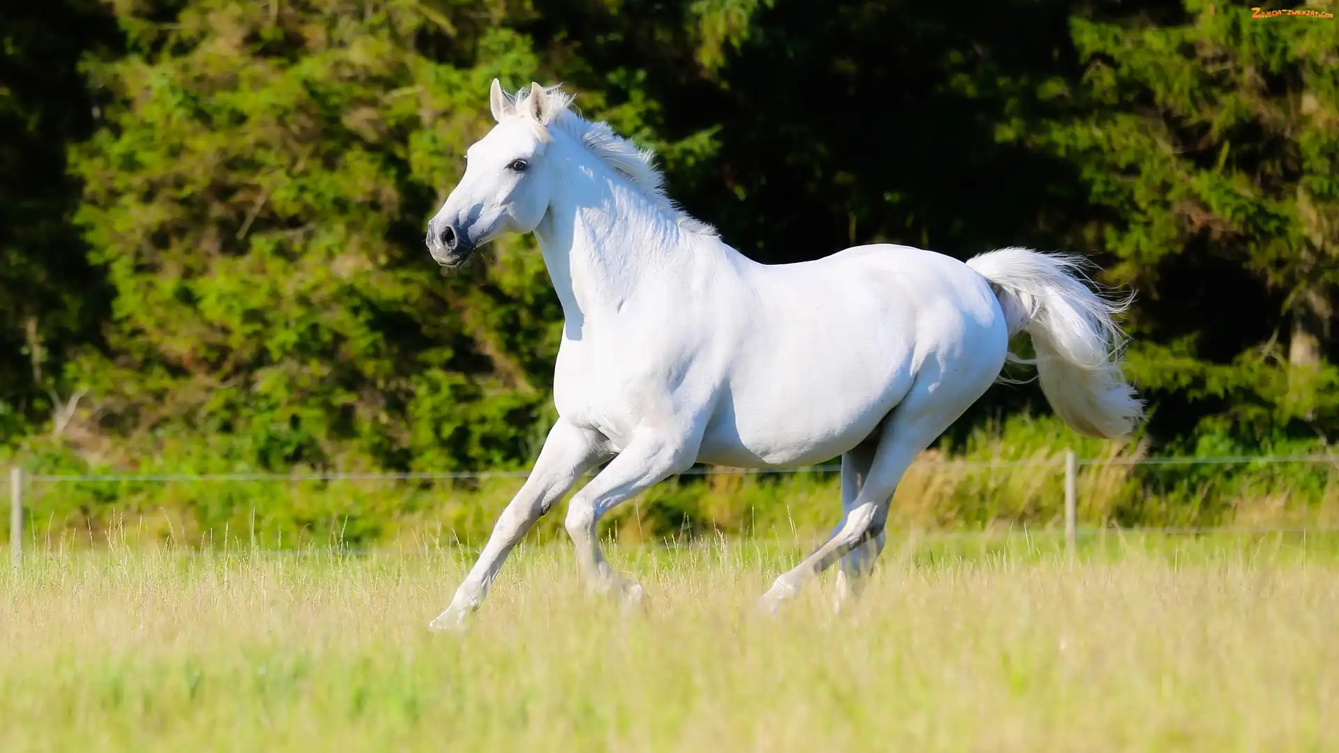 Koń, Łąka, Biały, Trawa