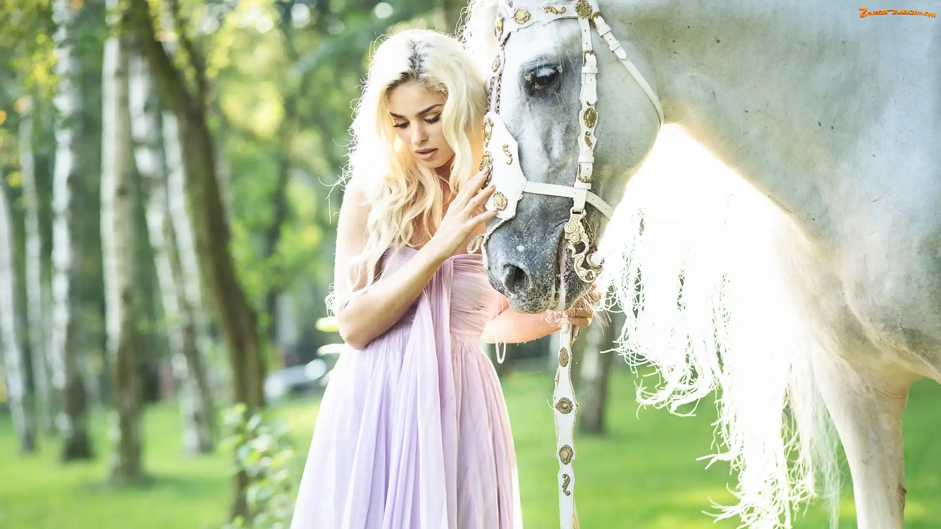 Zdjęcie: Koń, Blondynka, Biały, Kobieta