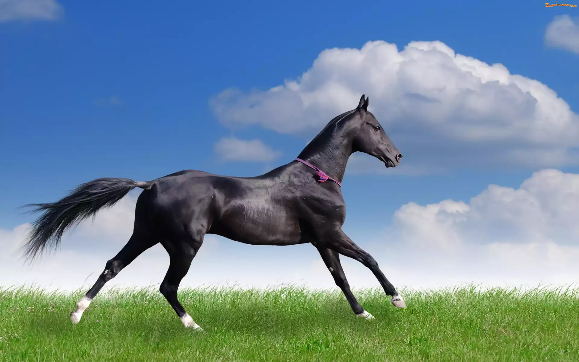 Chmury, Koń, Trawa