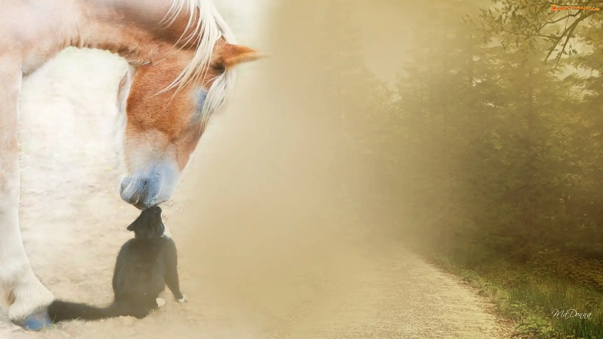 Zdjęcie: Droga, Koń, Kot