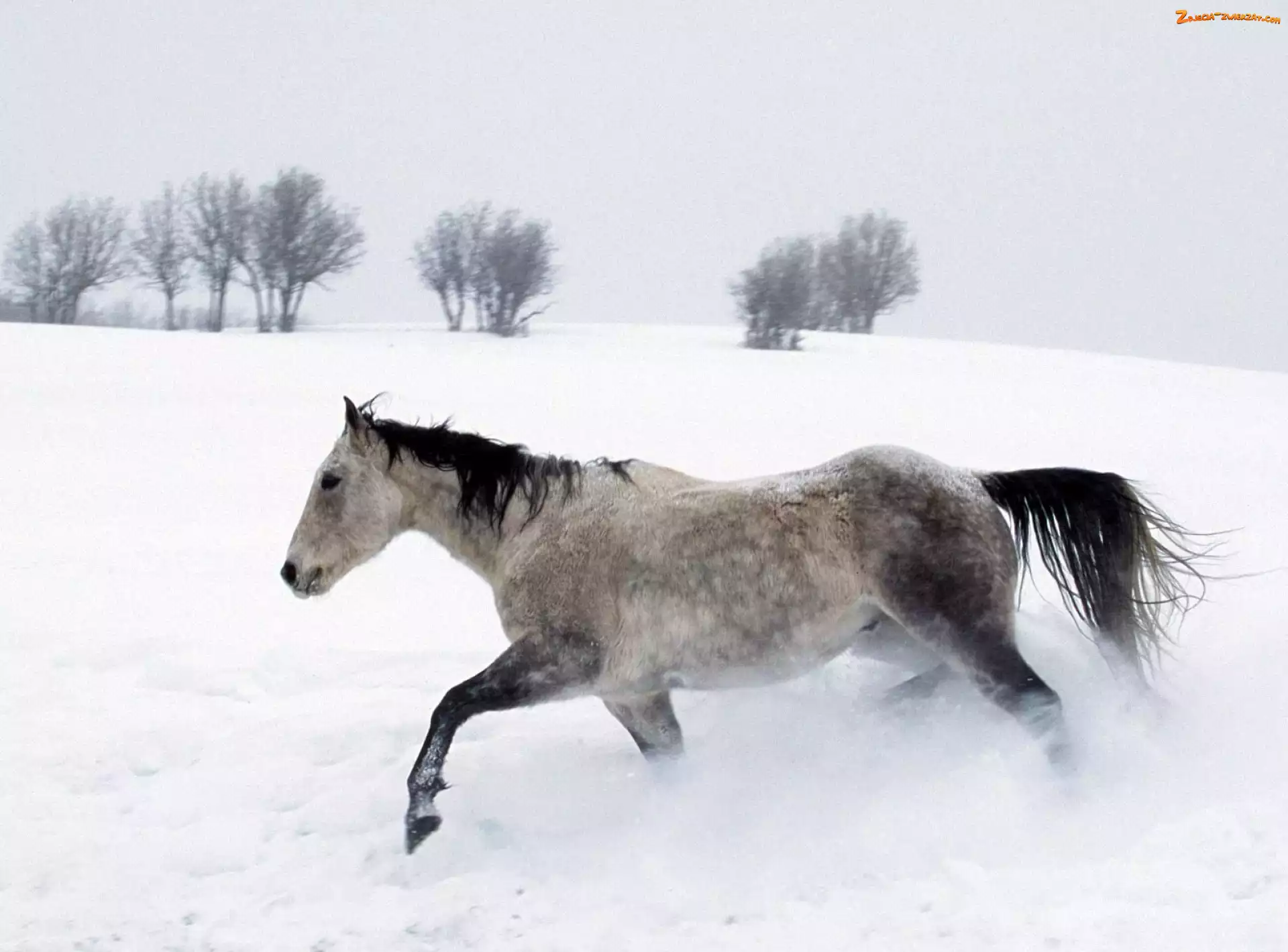 Zdjęcie: drzewa, Koń, śnieg