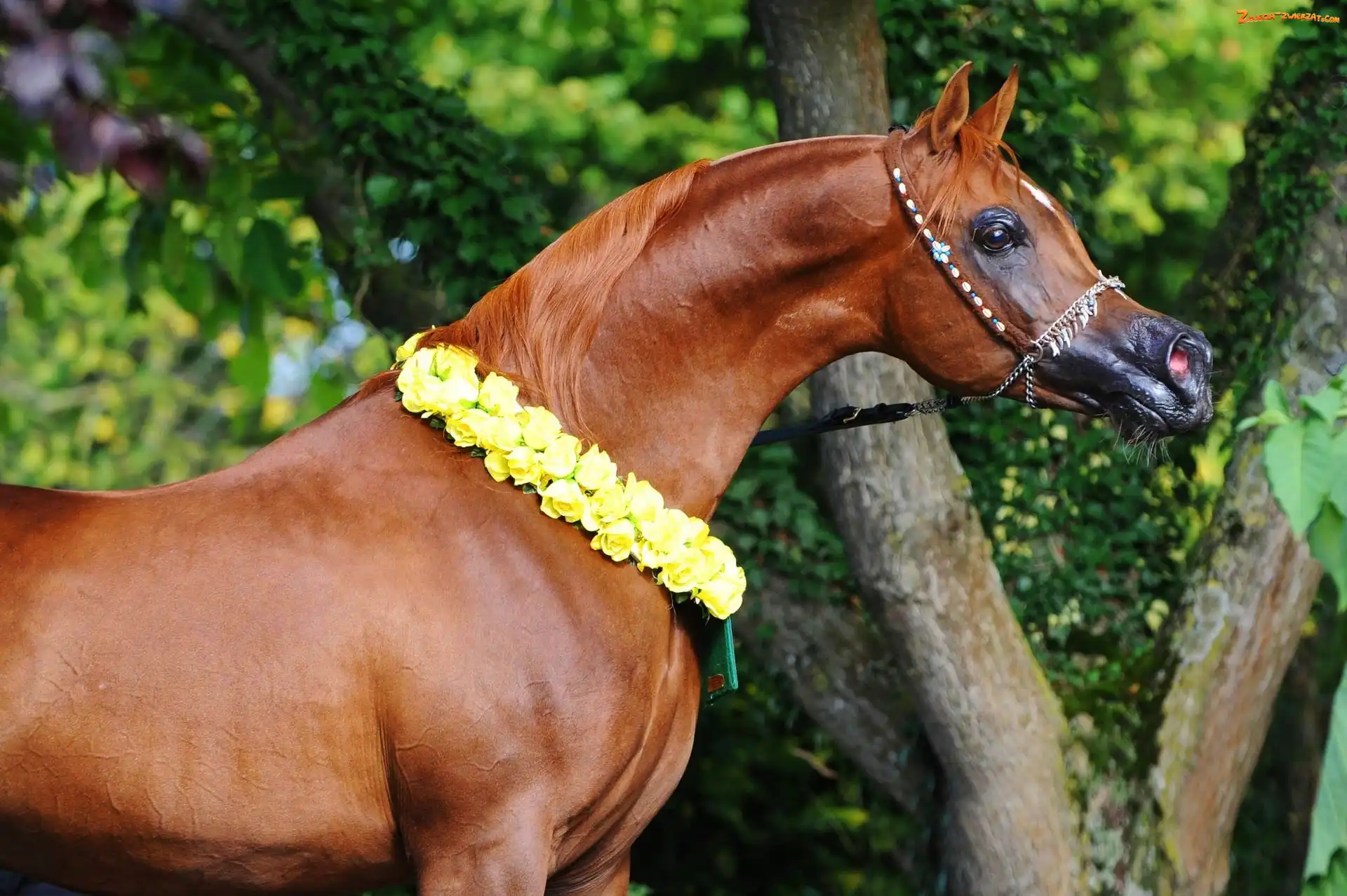 Żółta, Drzewo, Koń, Girlanda