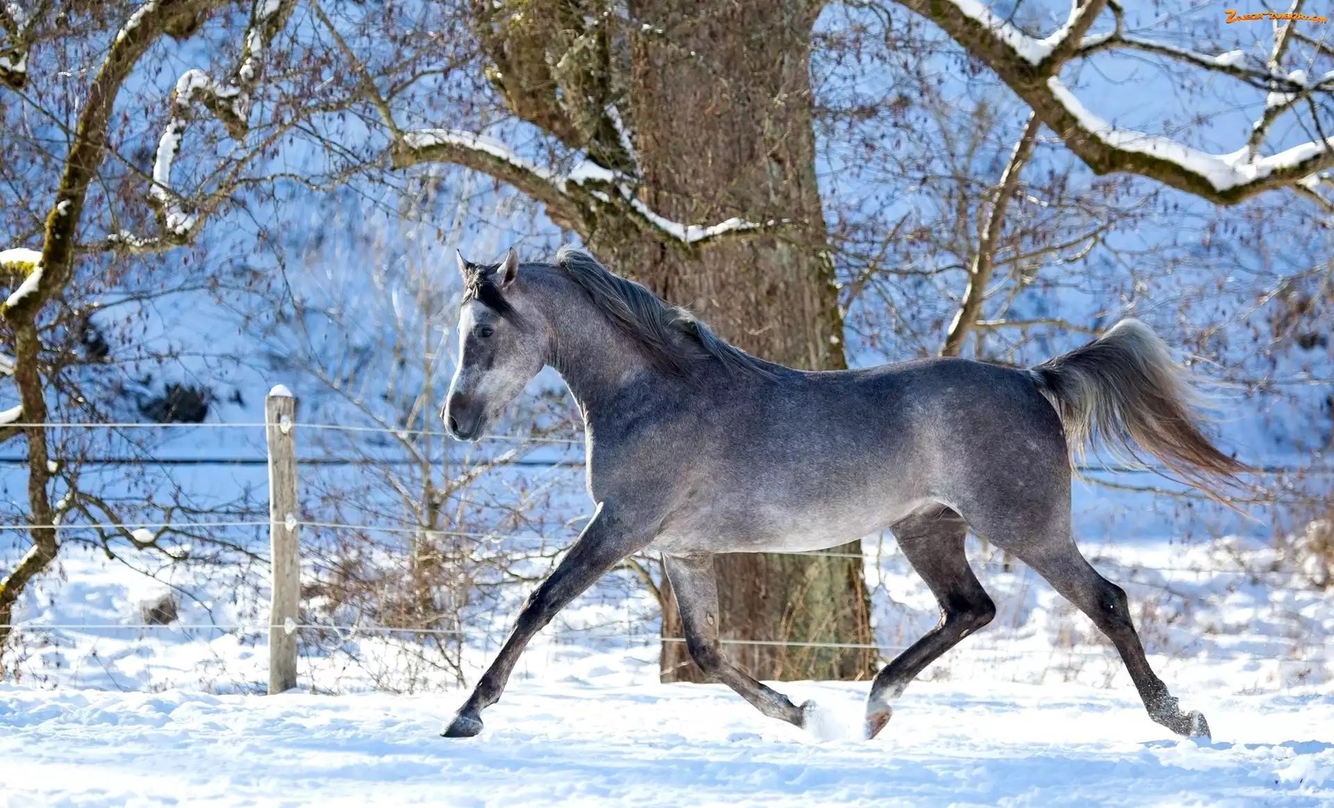 Drzewo, Koń, Zima