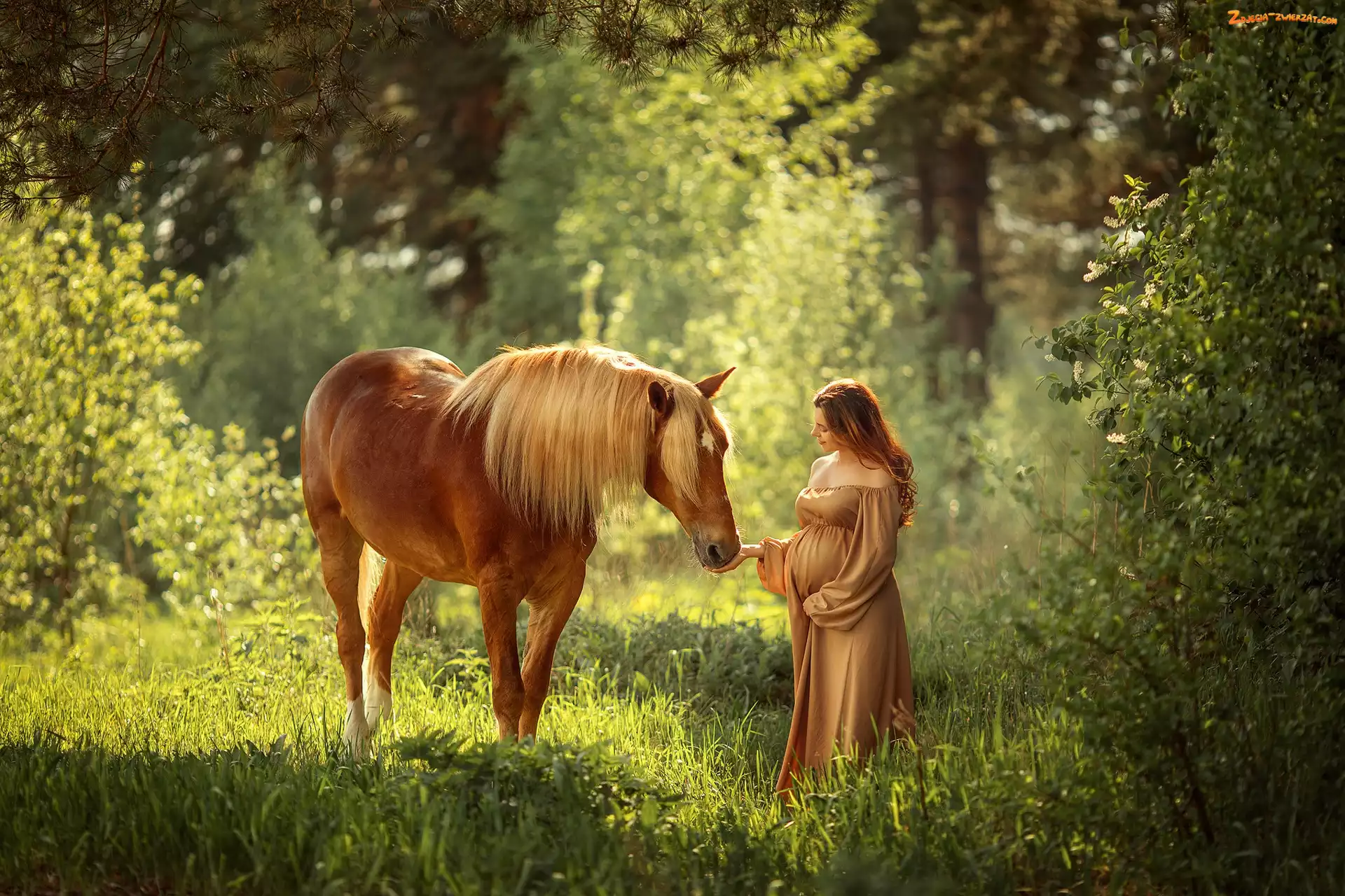 Koń, Las, Kobieta, Drzewa
