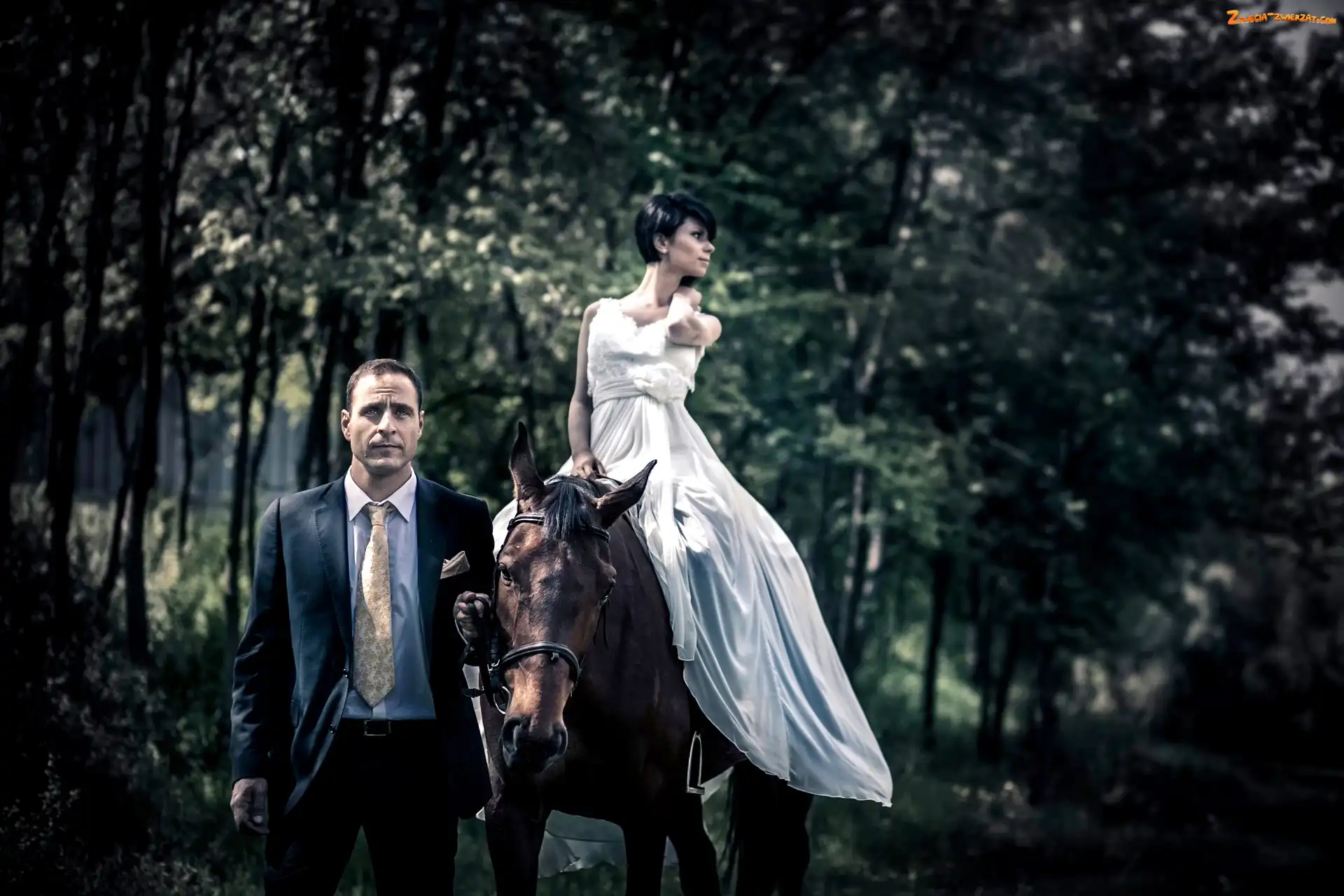 Zdjęcie: Koń, Mężczyzna, Las, Kobieta