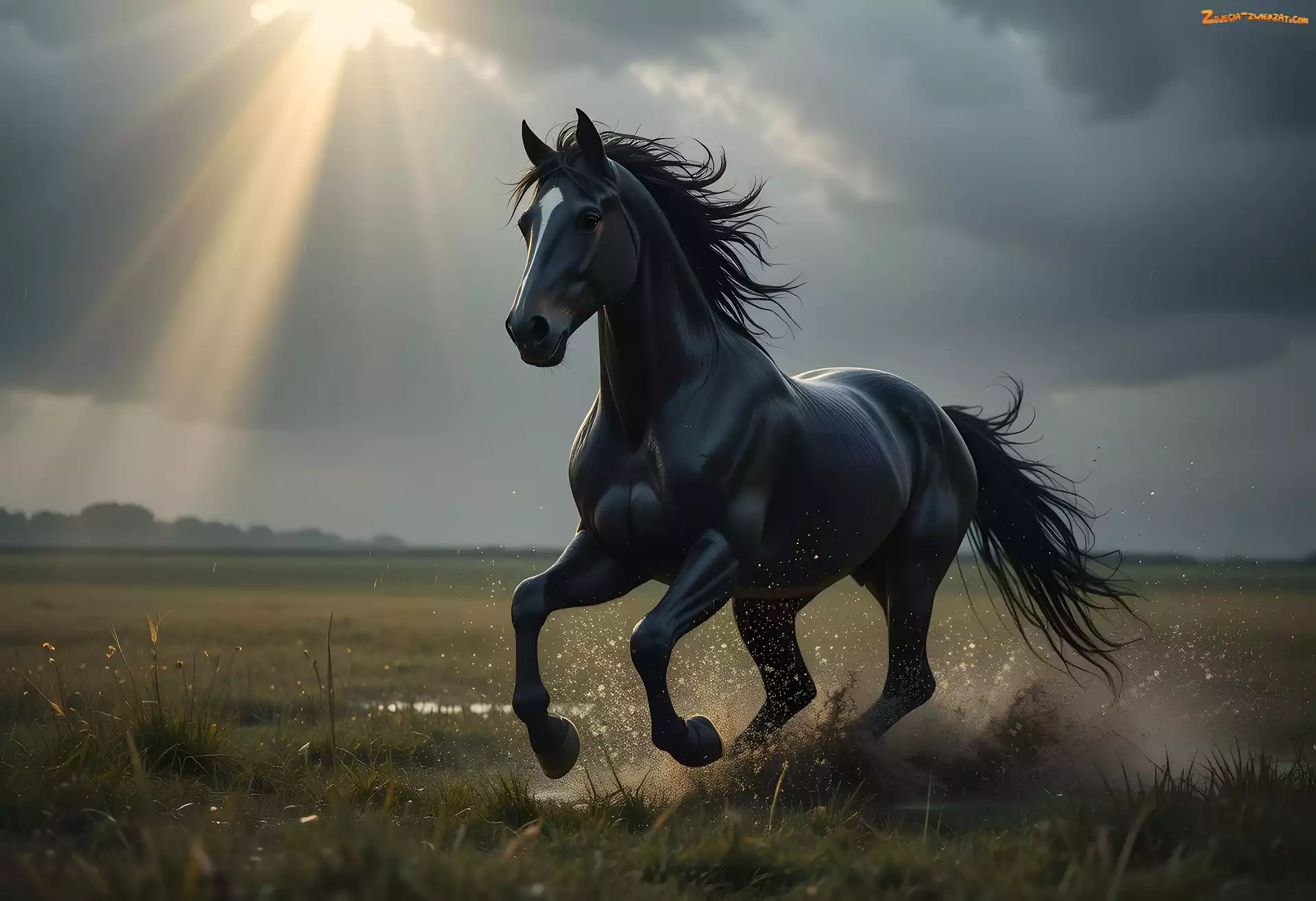 Zdjęcie: Grafika, Mokradła, Czarny, Koń, Zachmurzenie, Niebo