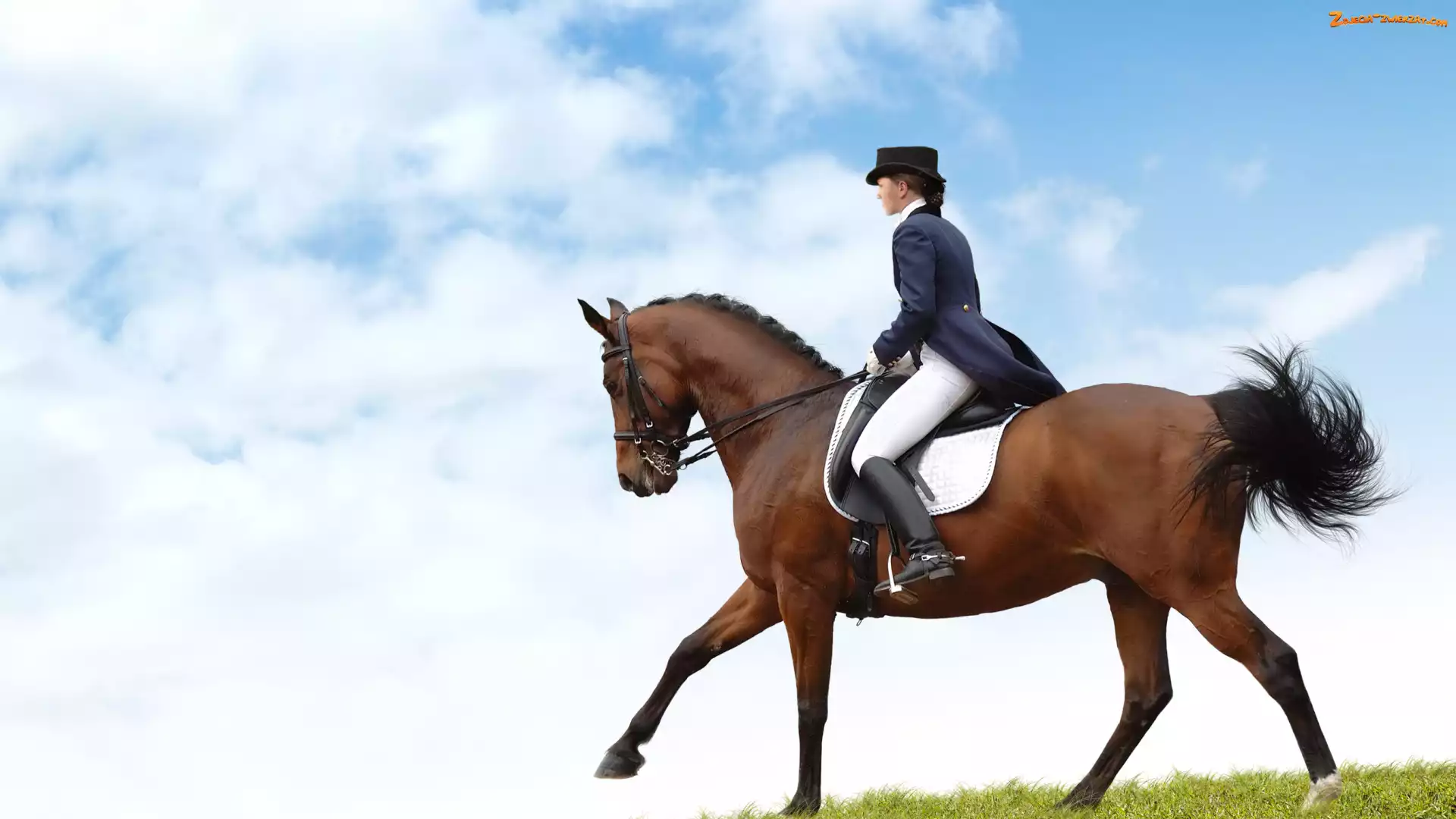 Chmury, Jeździectwo, Kobieta, Koń, Pole, Niebo