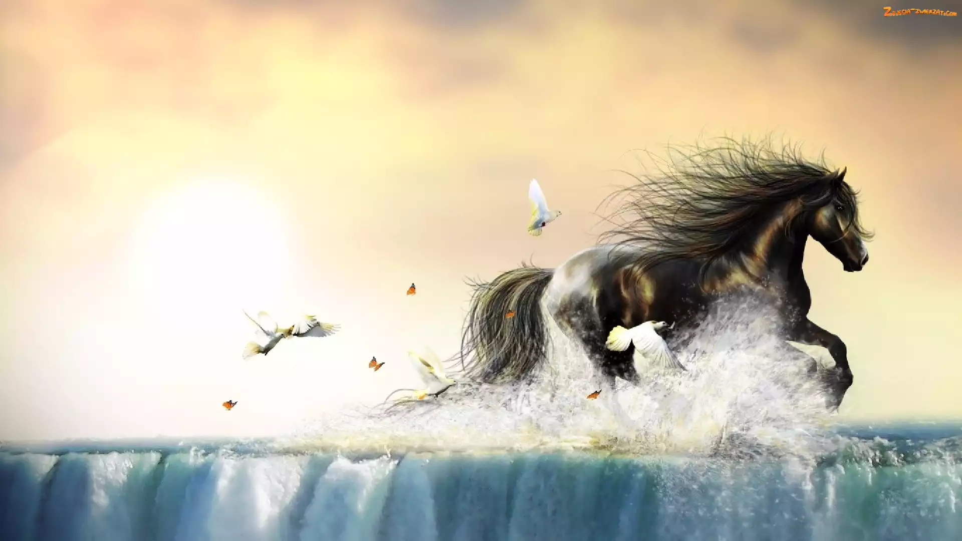 Ptaki, Koń, Wodospad