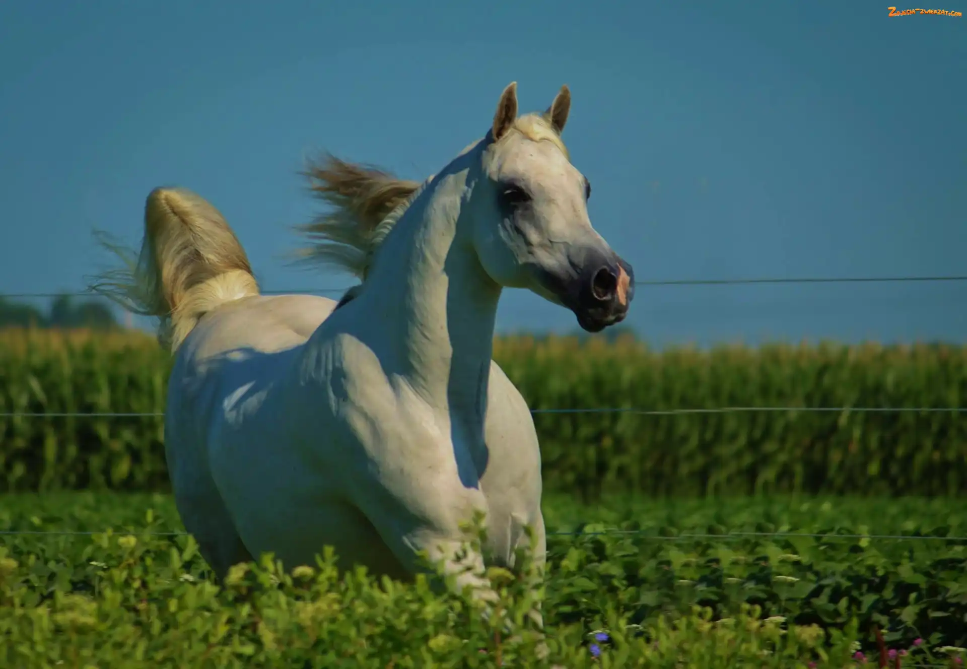 Koń, Grzywa, Siwy, Rozwiana