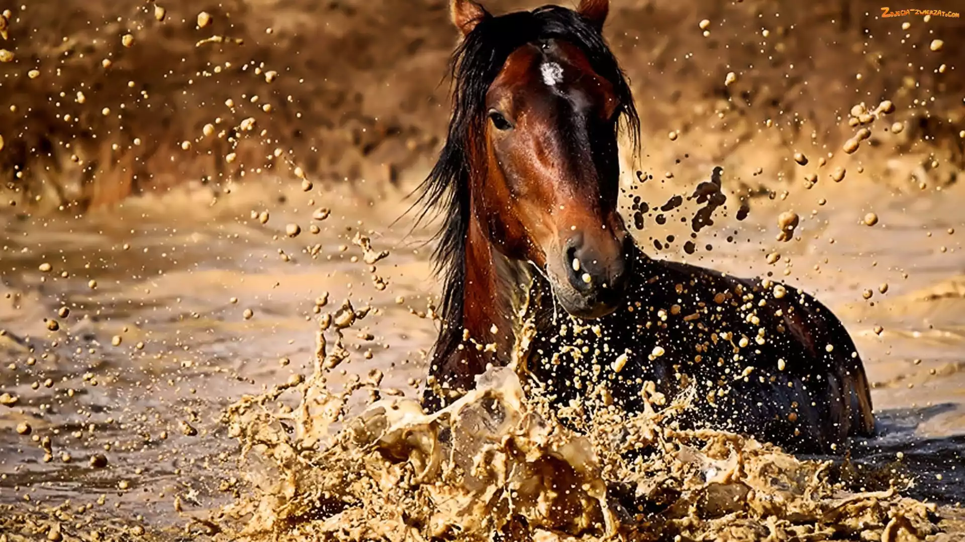 Zdjęcie: Woda, Koń, Rozbryzgująca