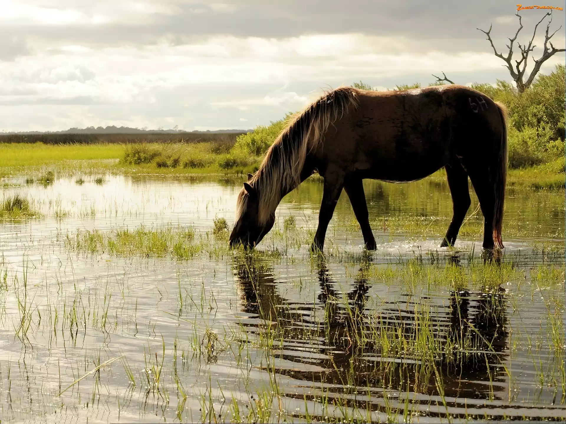 Zdjęcie: Zalewisko, Koń, Wodopój