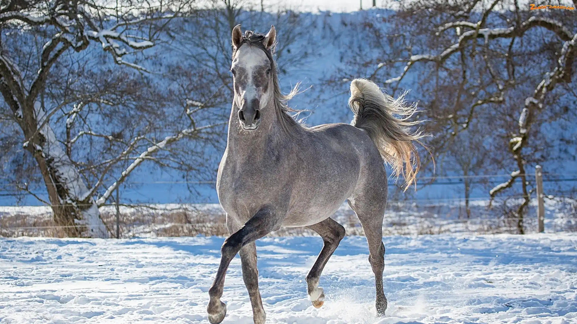 Zdjęcie: Koń, Bieg, Zima, Siwek