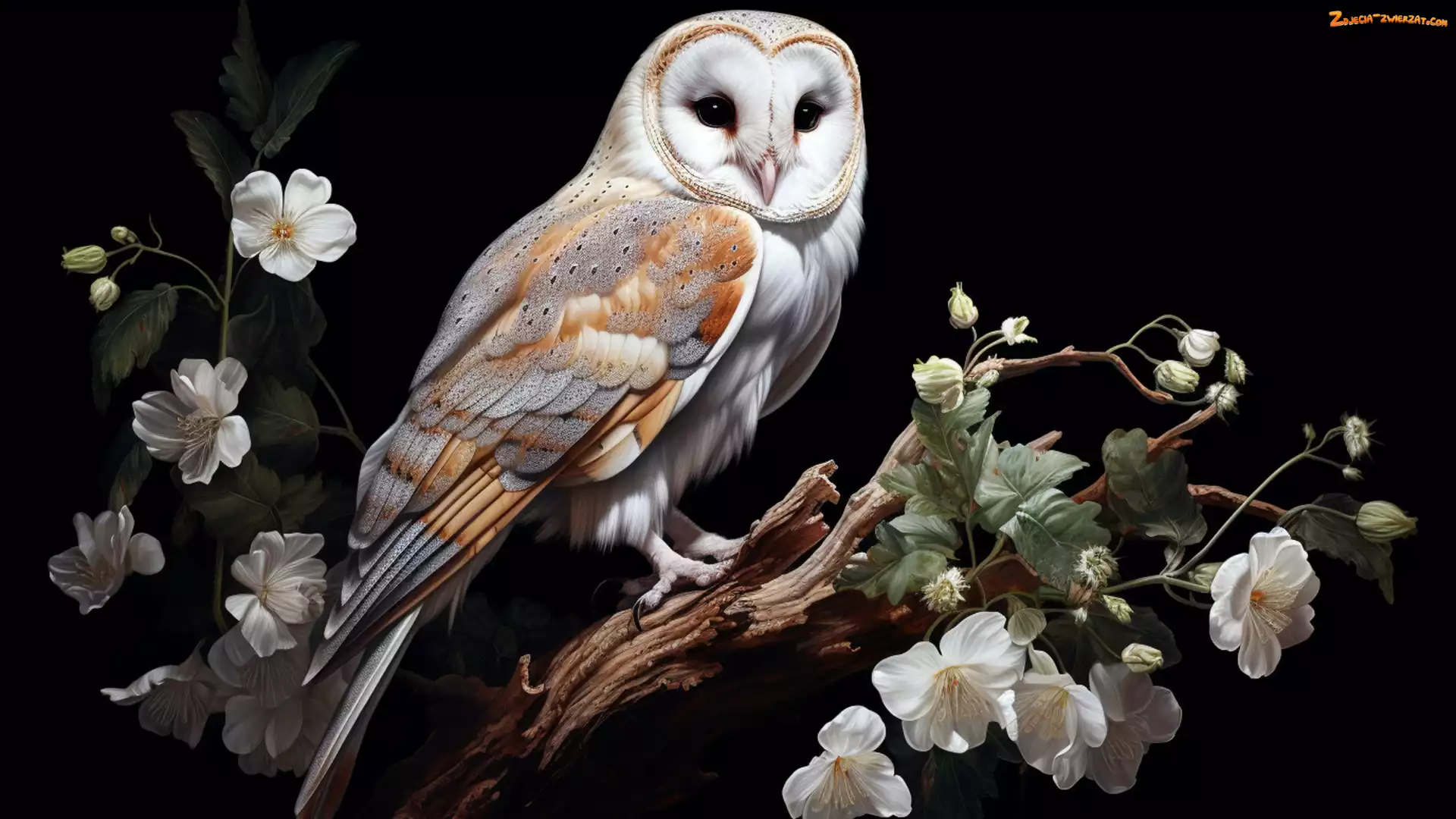 Zdjęcie: Białe, Konar, Kwiaty, Sowa, Płomykówka