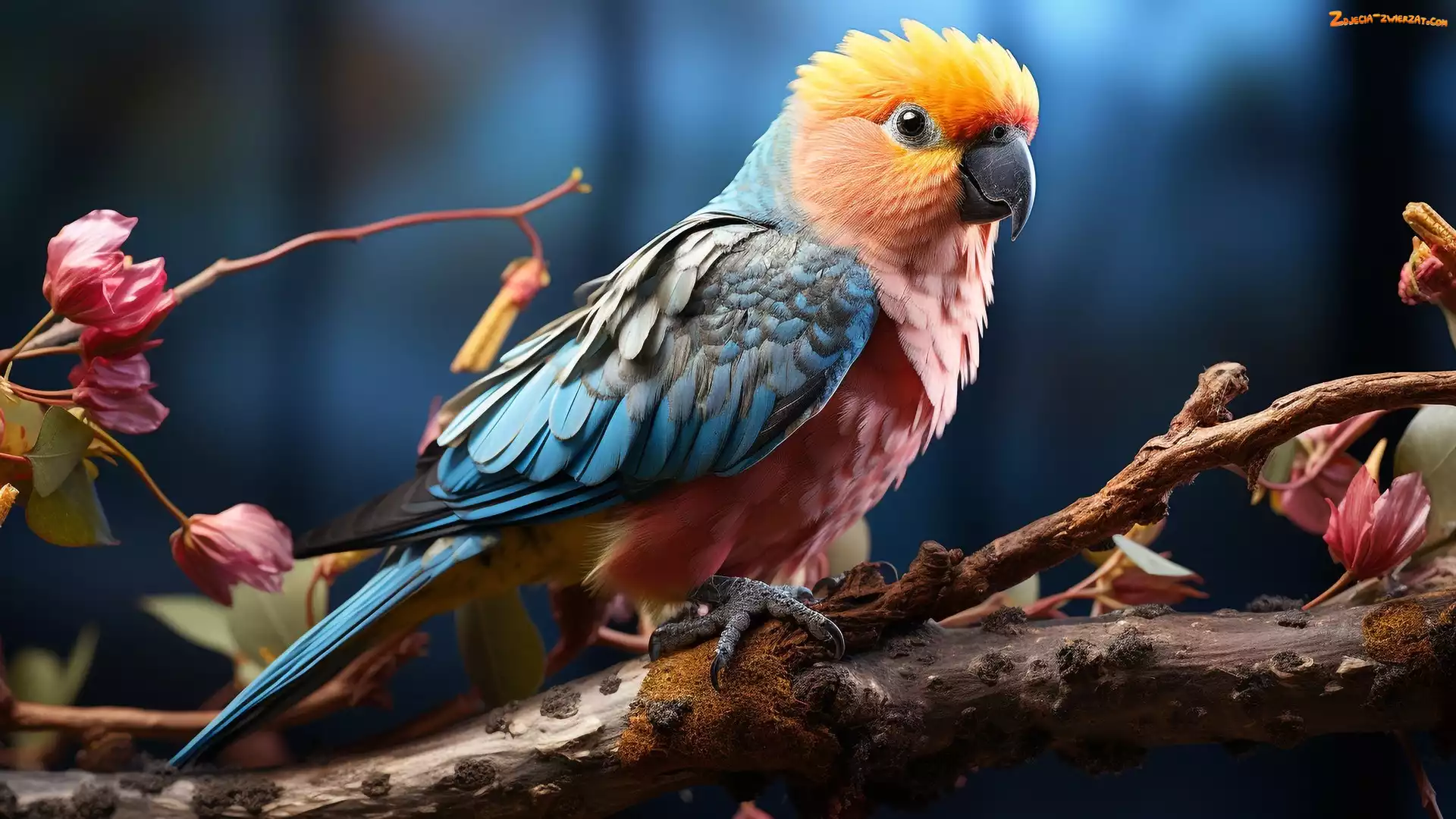 Zdjęcie: Papuga, Drzewo, Kwiaty, Konar