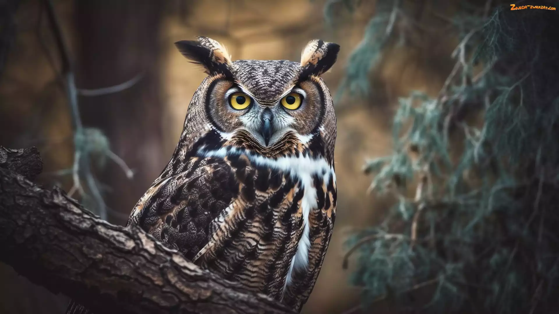 Zdjęcie: Puchacz, Sowa, Gałązki, Konar