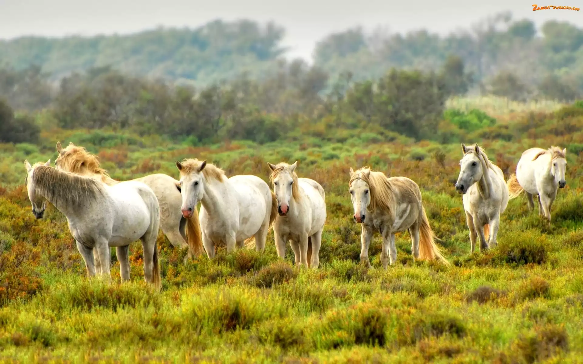 Zdjęcie: Konie, Łąka, Białe, Stado