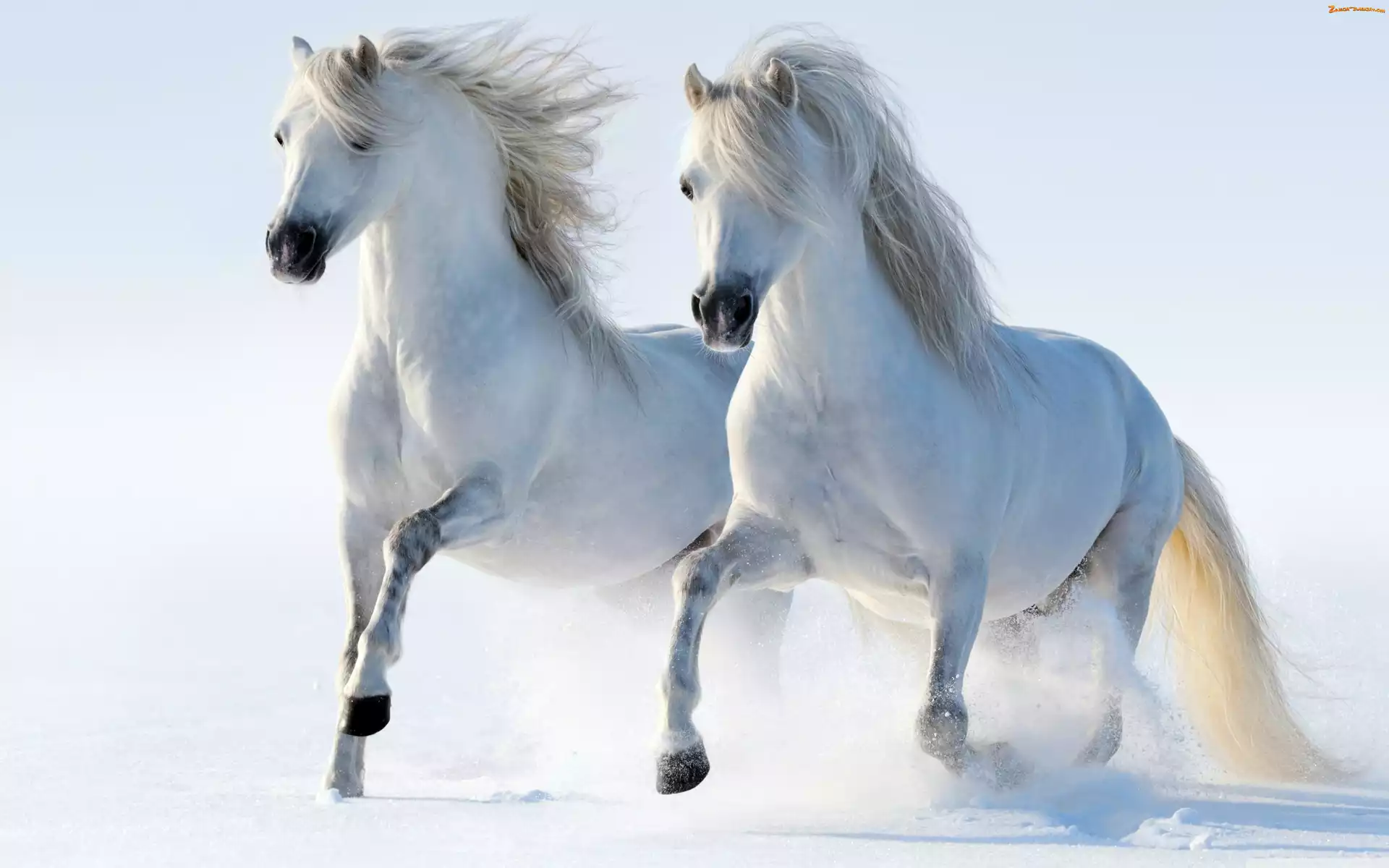 Zdjęcie: Konie, Śnieg, Białe, Zima