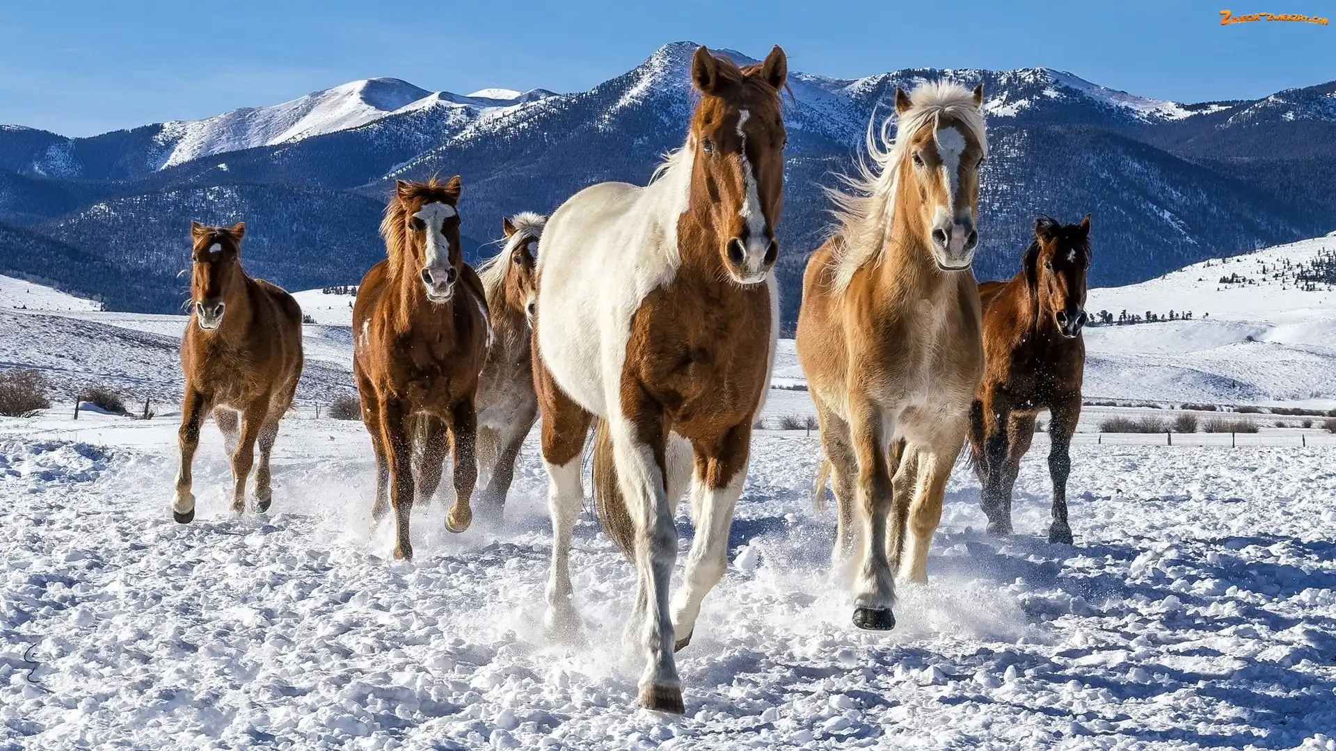 Zdjęcie: Konie, Góry, Biegnące, Zima