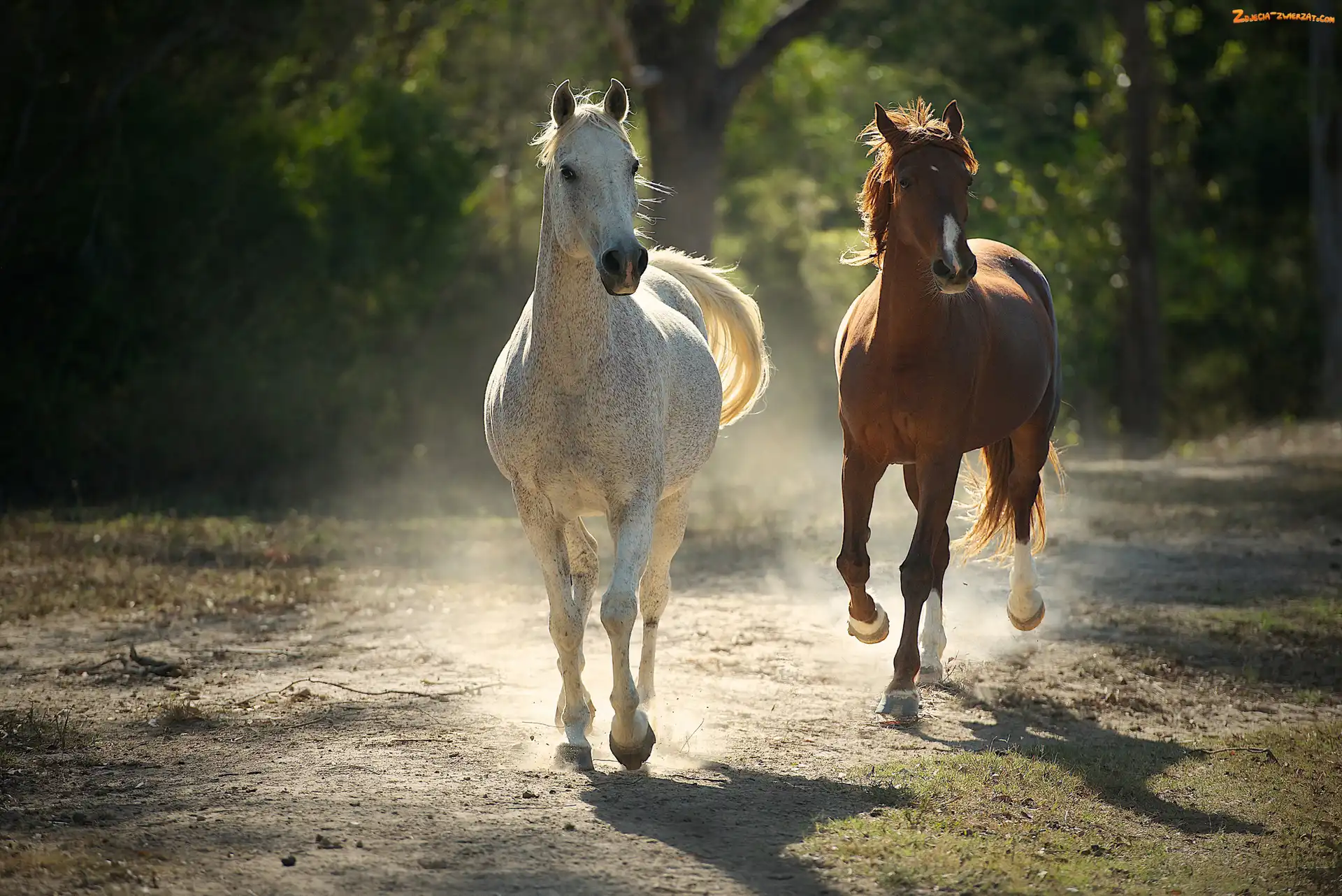 Zdjęcie: Konie, Kasztan, Biegnące, Siwy