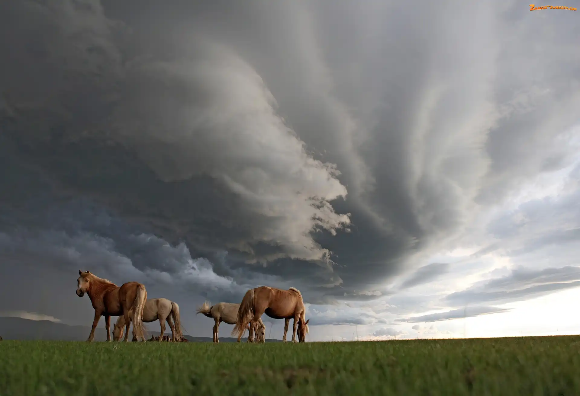 Zdjęcie: Cztery, Konie, Chmury, Ciemne