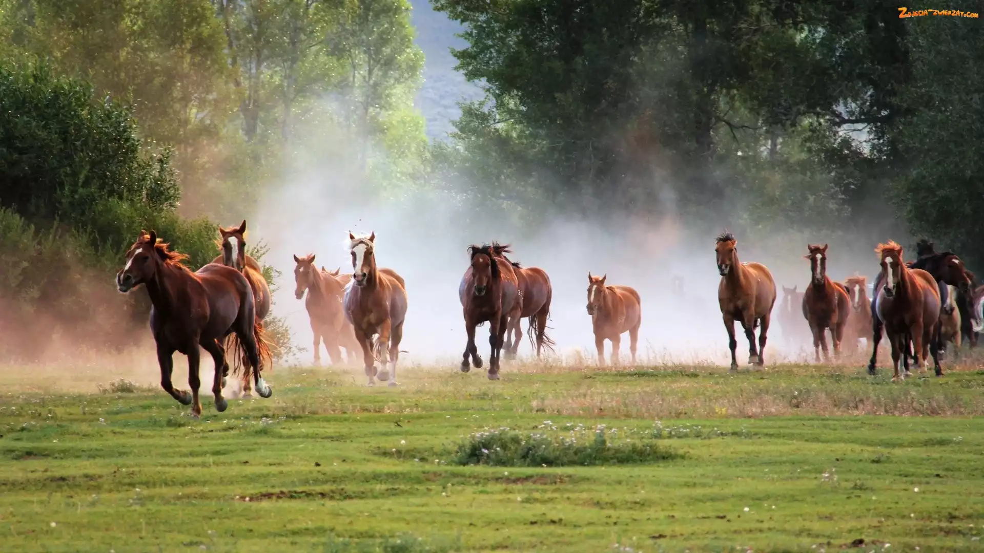 Zdjęcie: Drzewa Tła na Facebooka, Konie, Pole