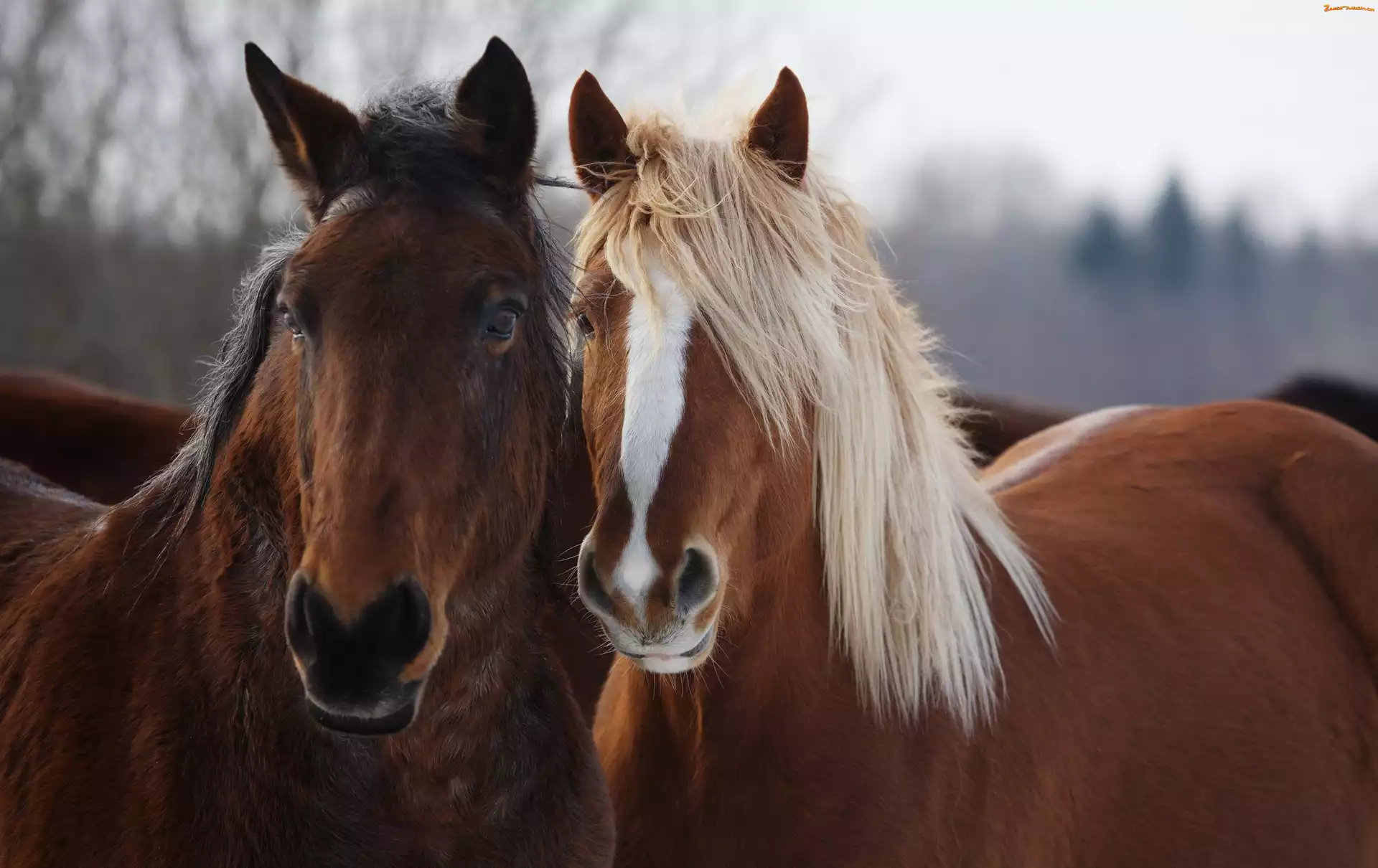 Konie, Grzywa, Dwa, Biała