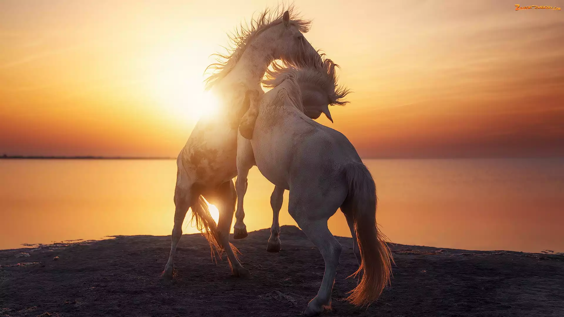 Konie, Zachód słońca, Dwa, Morze