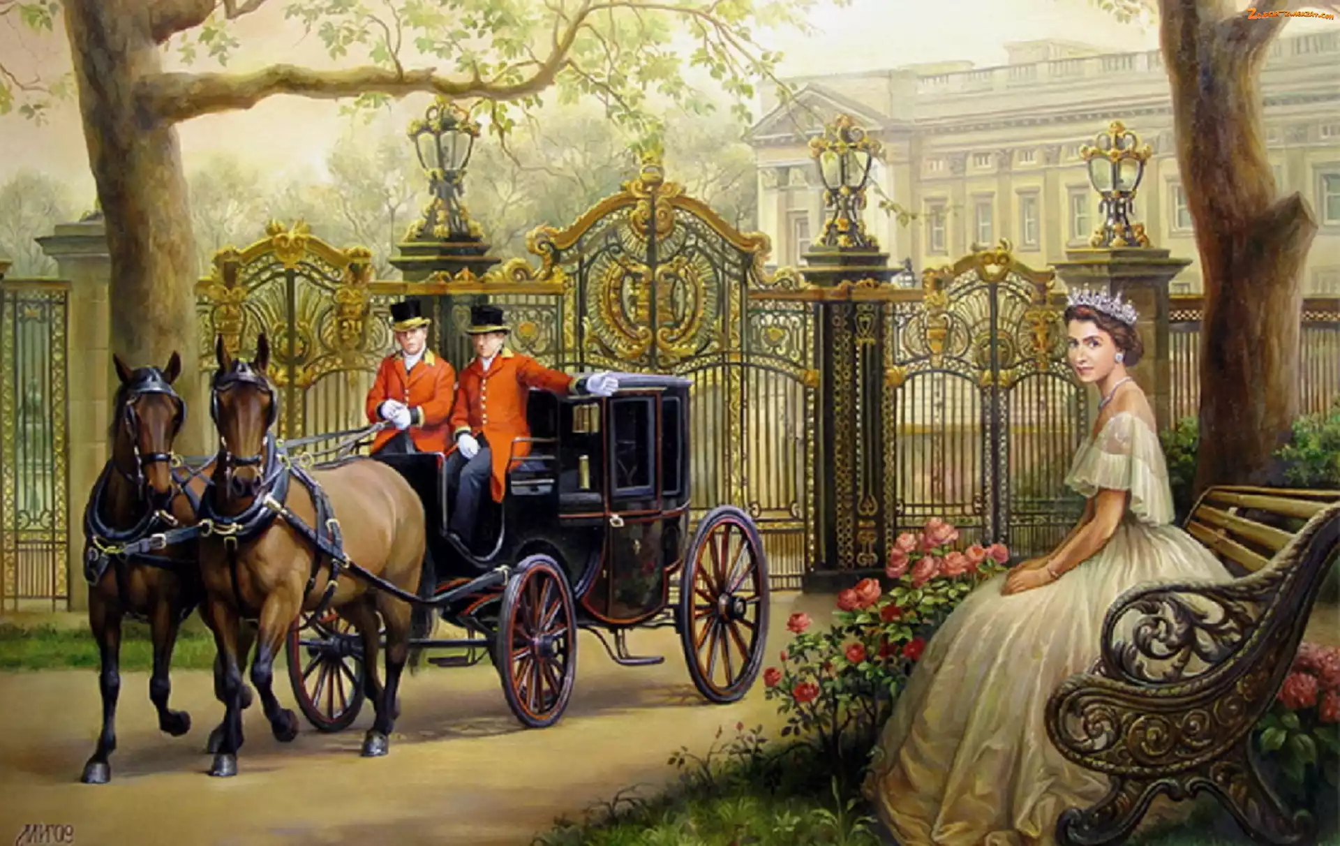 Zdjęcie: Konie, Pałac, Królowa, Dziewczyna, Powóz