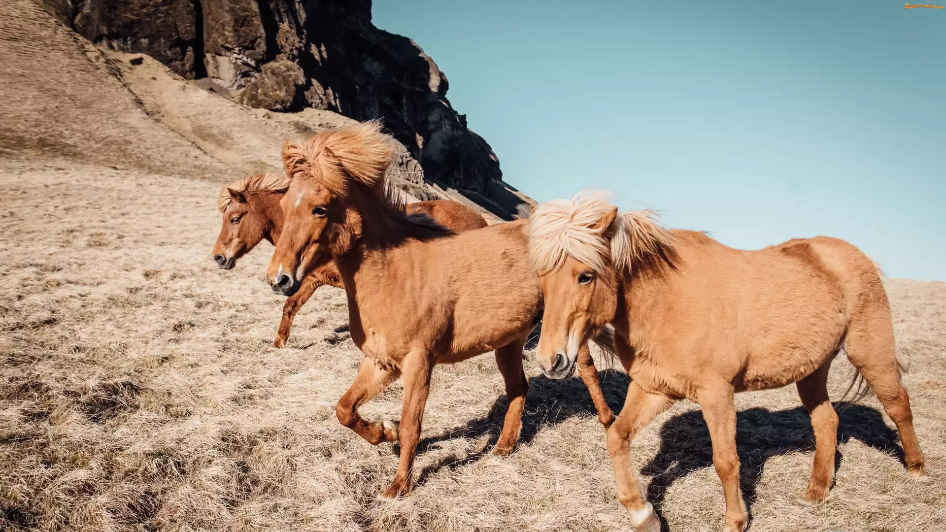Zdjęcie: Konie, Trawa, Dzikie, Góry