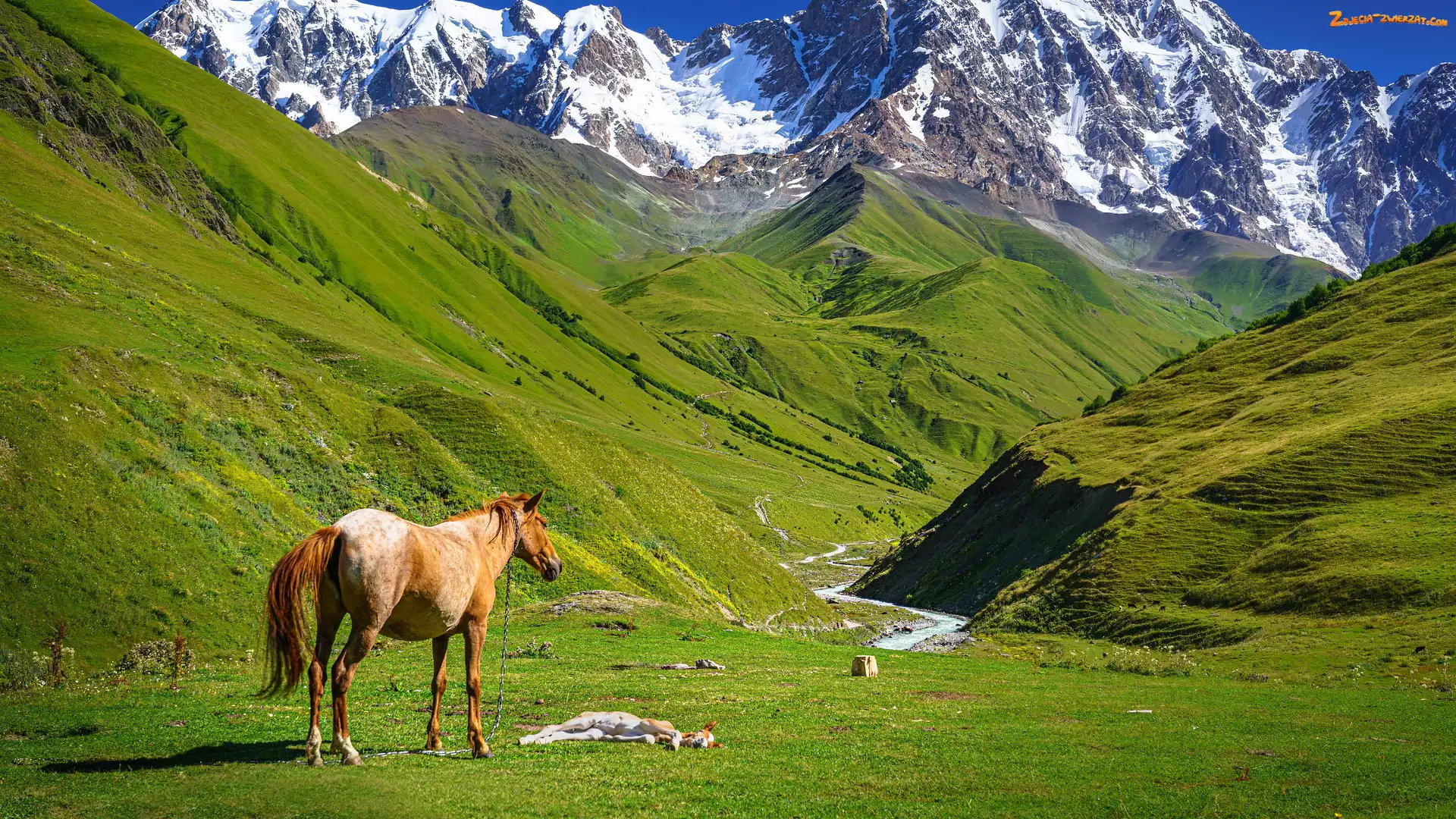 Gruzja, Rzeka Enguri, Góry Swaneckie, Ushguli, Swanetia, Wąwóz, Konie