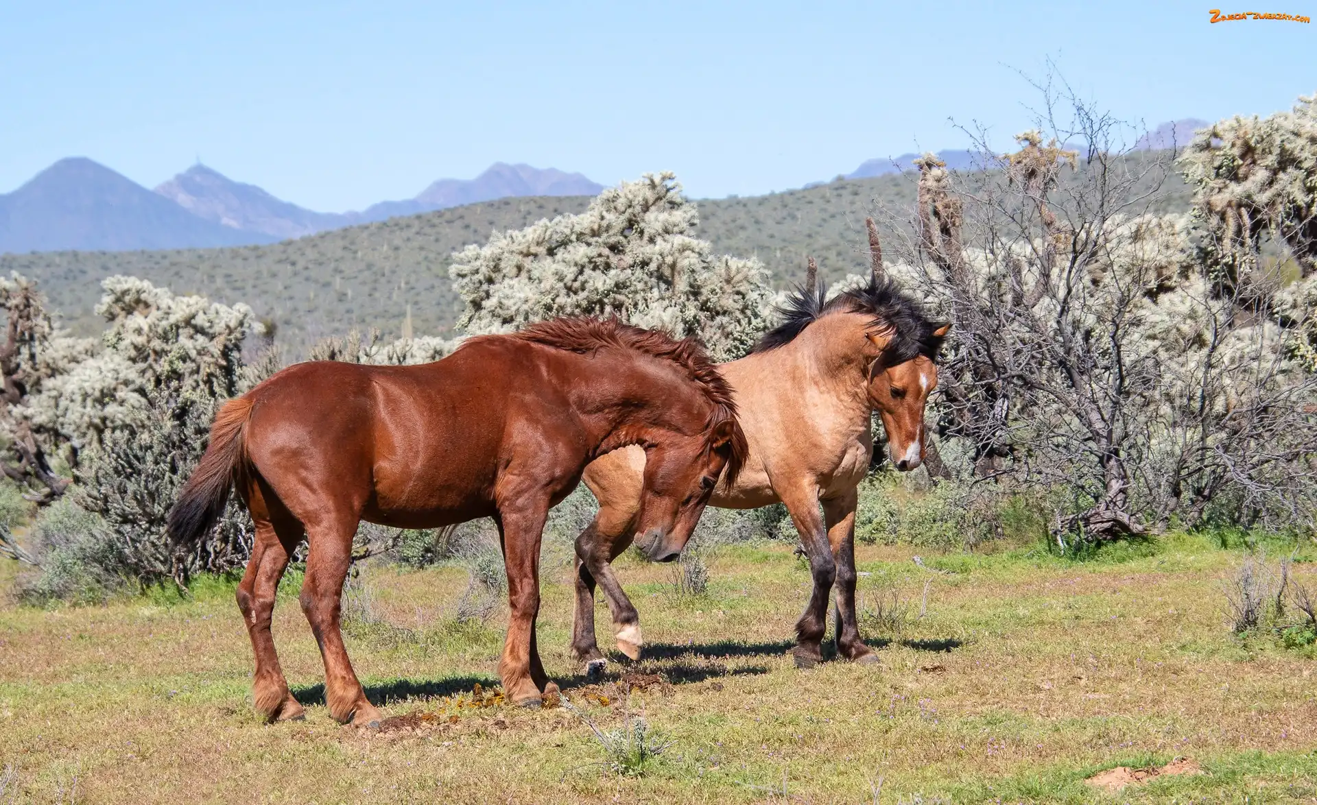 Zdjęcie: Góry, Konie, Krzewy