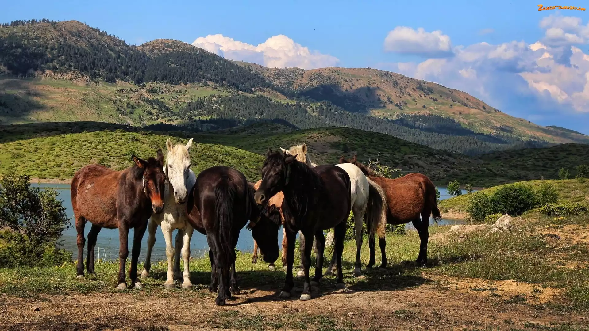 Zdjęcie: Góry, Jezioro, Stado, Konie