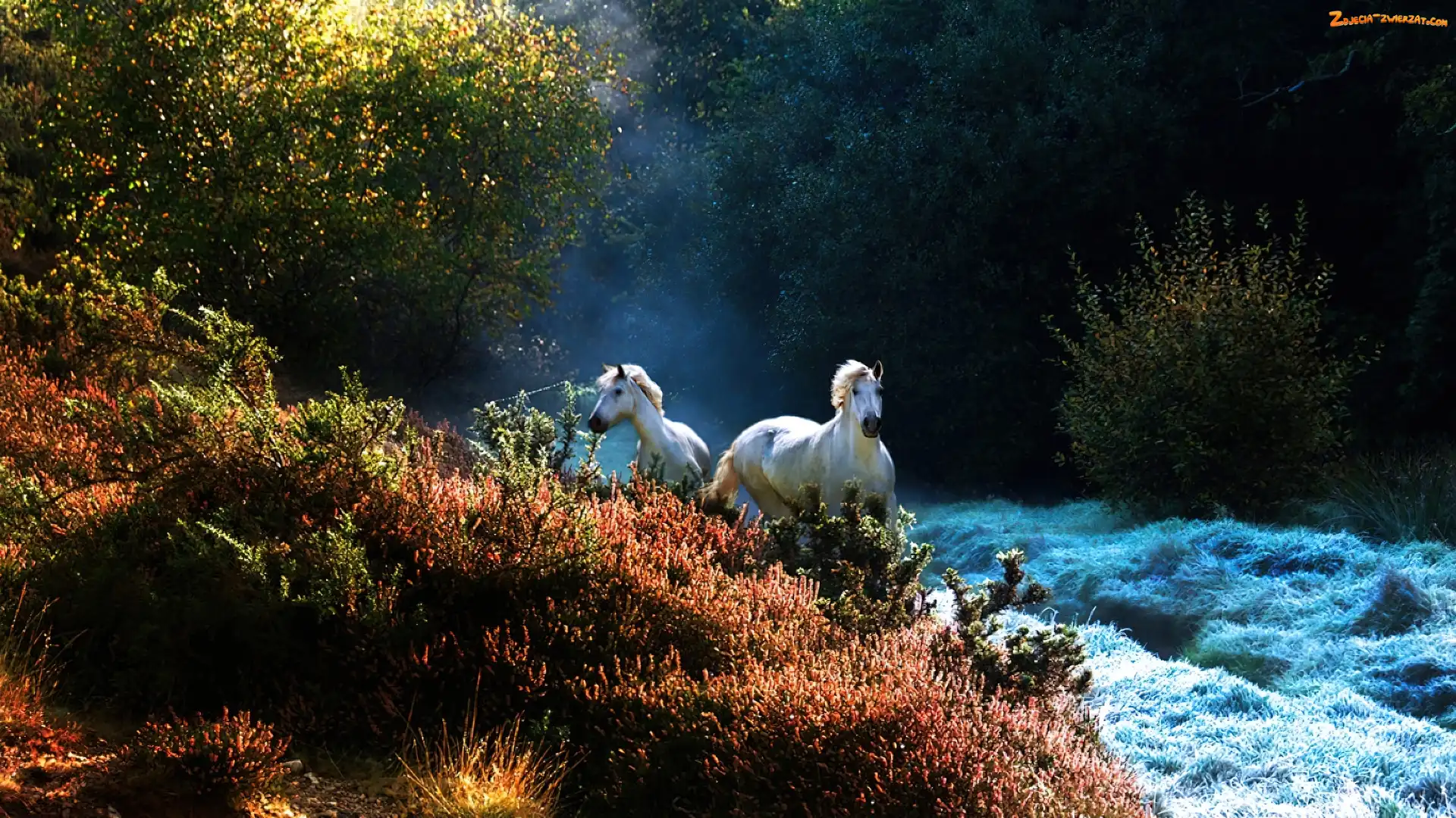Zdjęcie: Krzewy, Konie, Galop