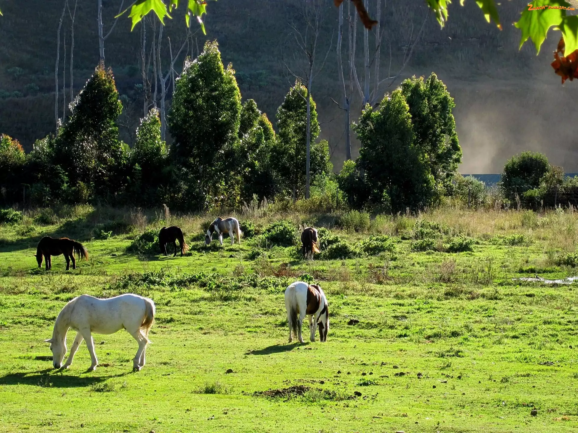 Zdjęcie: Łąka, Mgła, Konie, Poranek