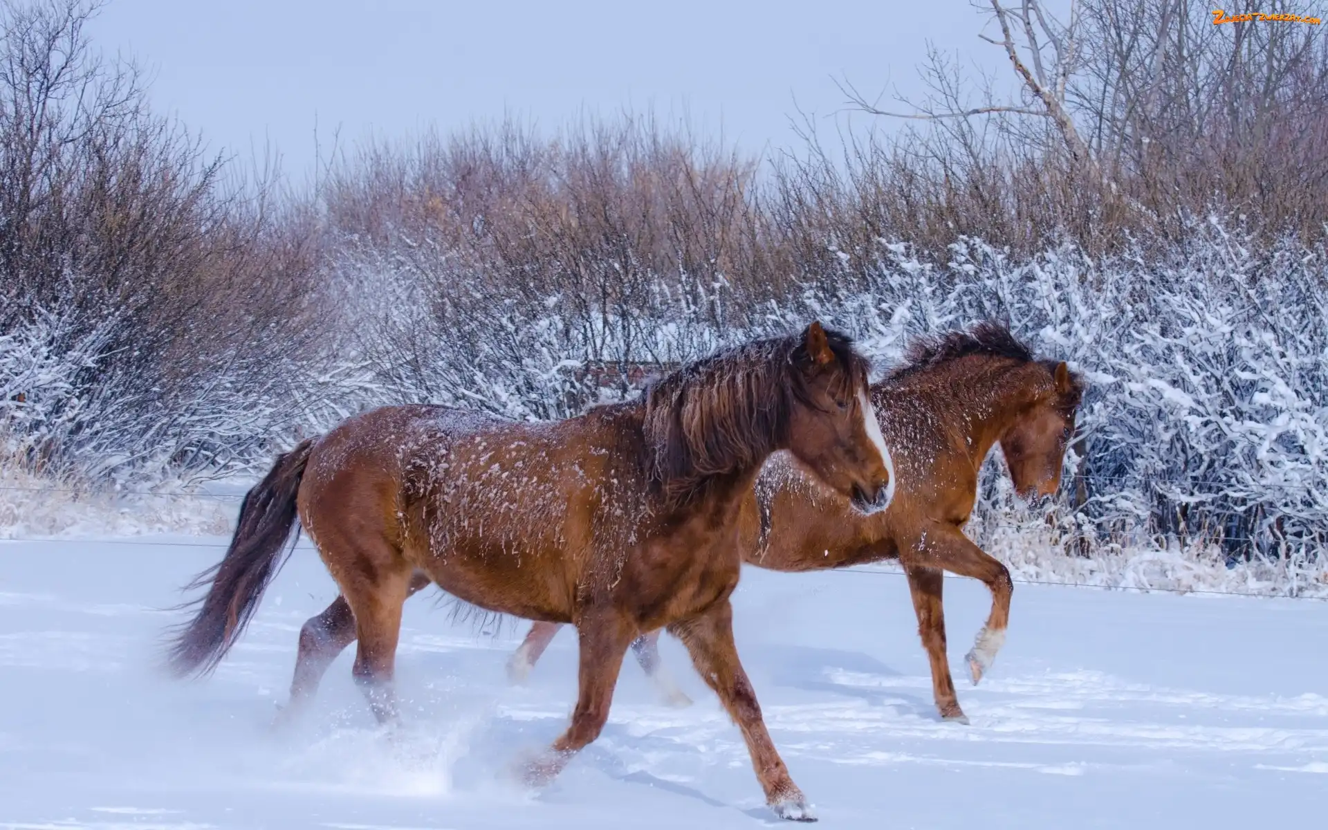 Zdjęcie: Śnieg, Konie, Galop