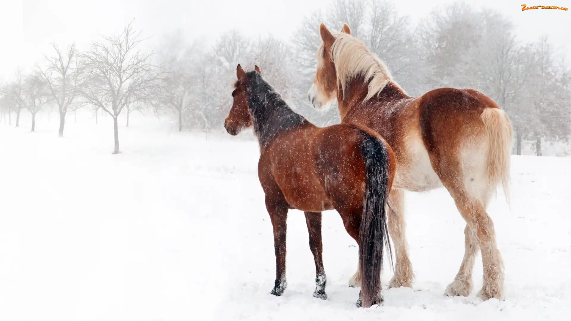 Zdjęcie: Śnieg, Konie, Padający