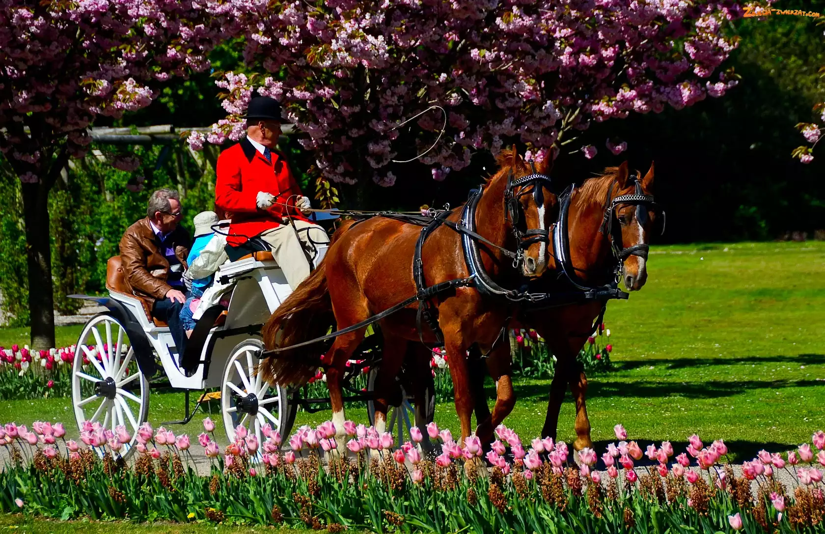 Zdjęcie: Konie, Tulipany, Park, Bryczka
