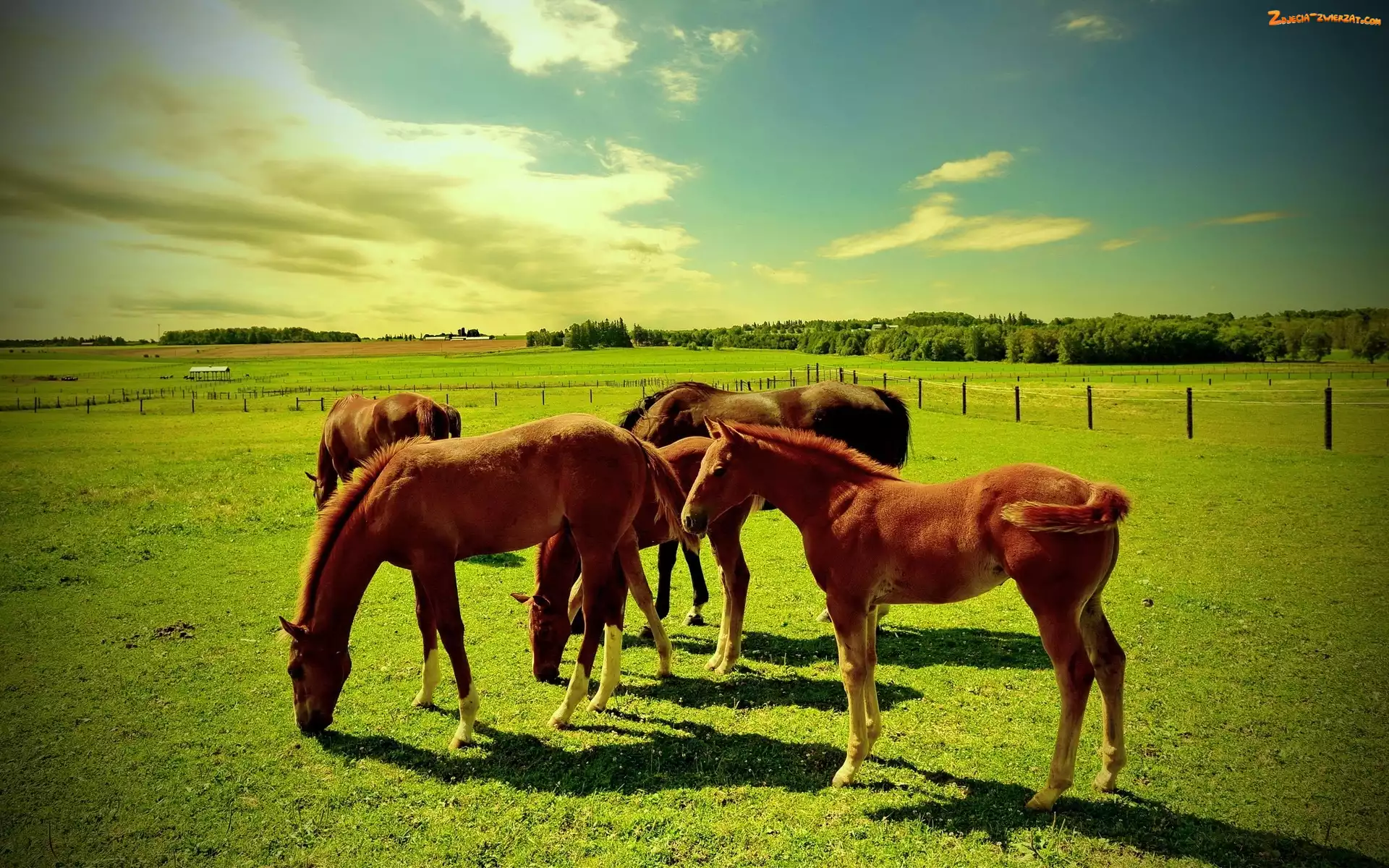 Zdjęcie: Pastwisko, Konie, Łąka