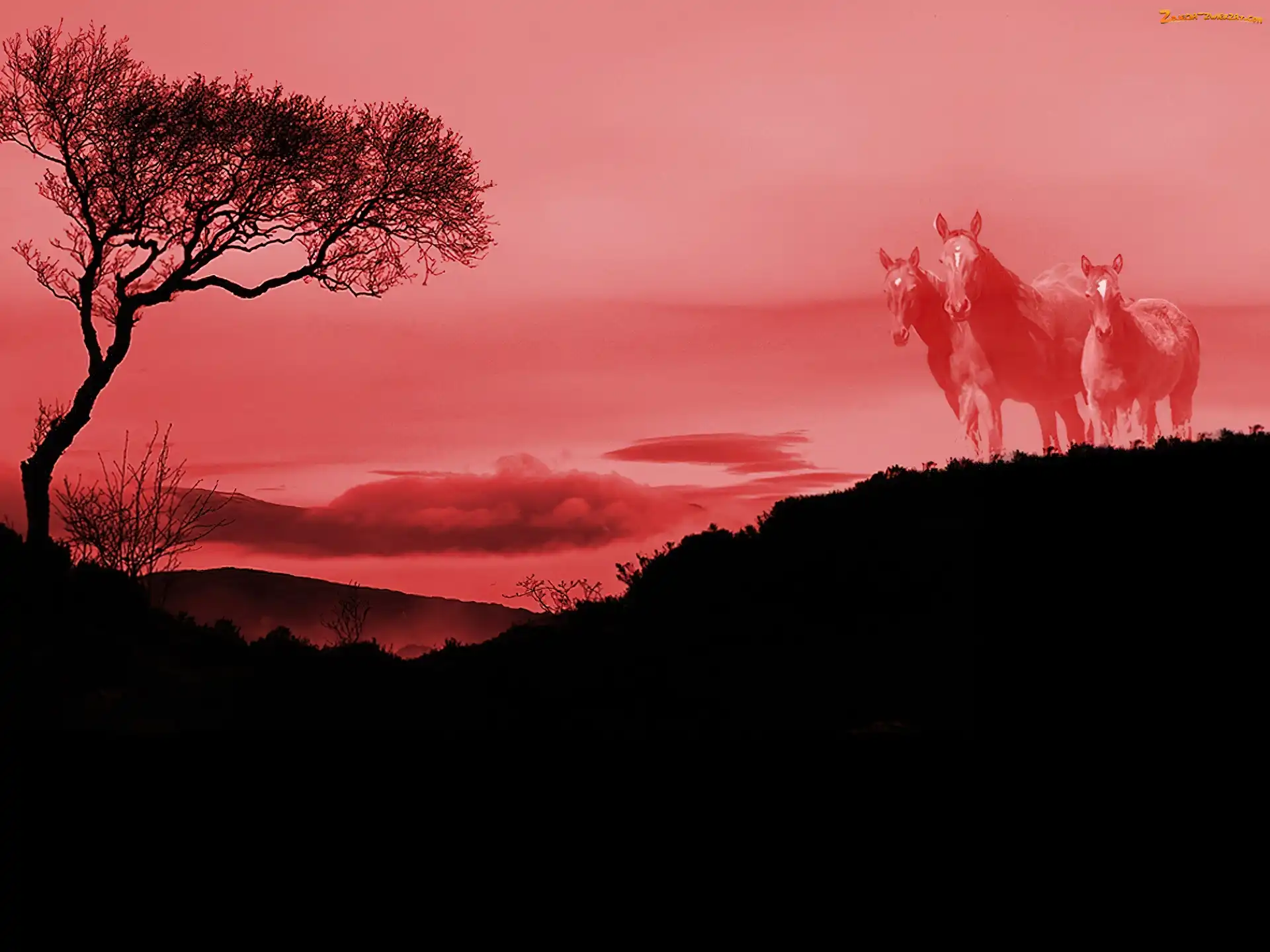 Zdjęcie: pejzarz, Konie, drzewo