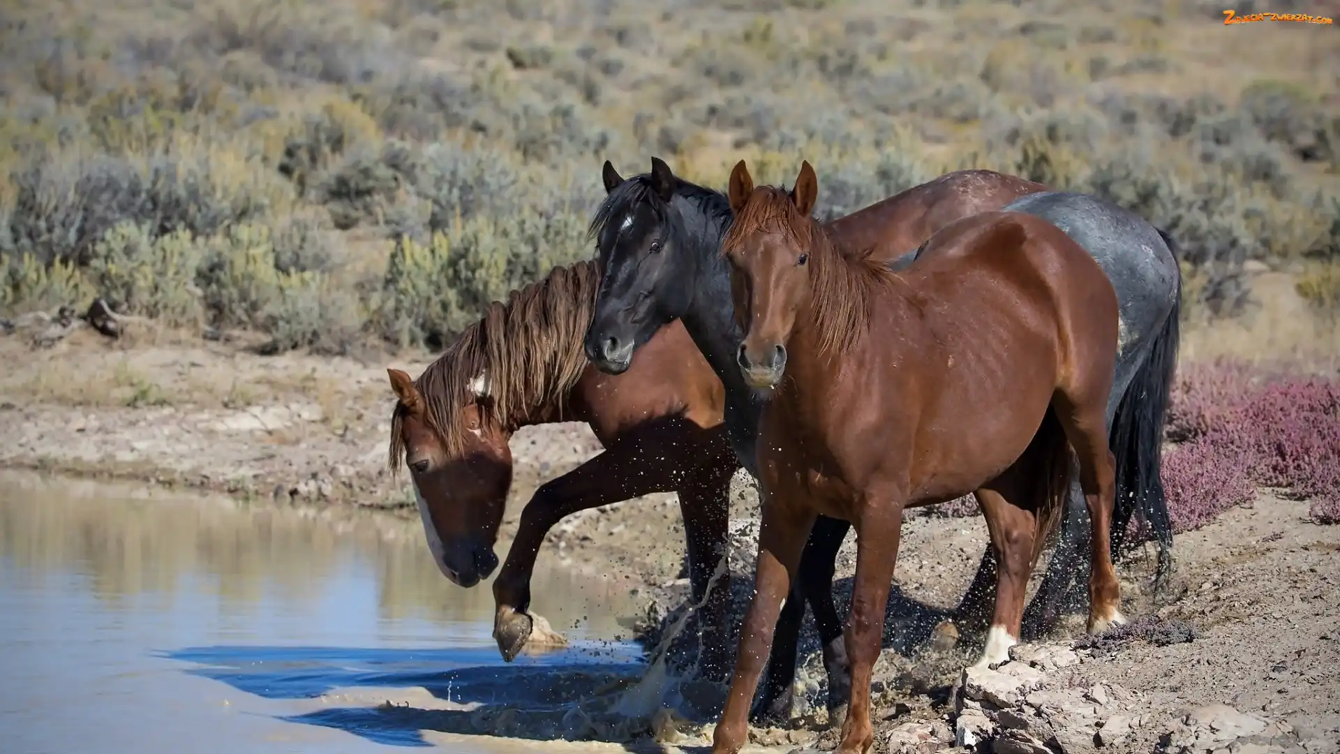 Zdjęcie: Konie, Brzeg, Trzy, Jezioro