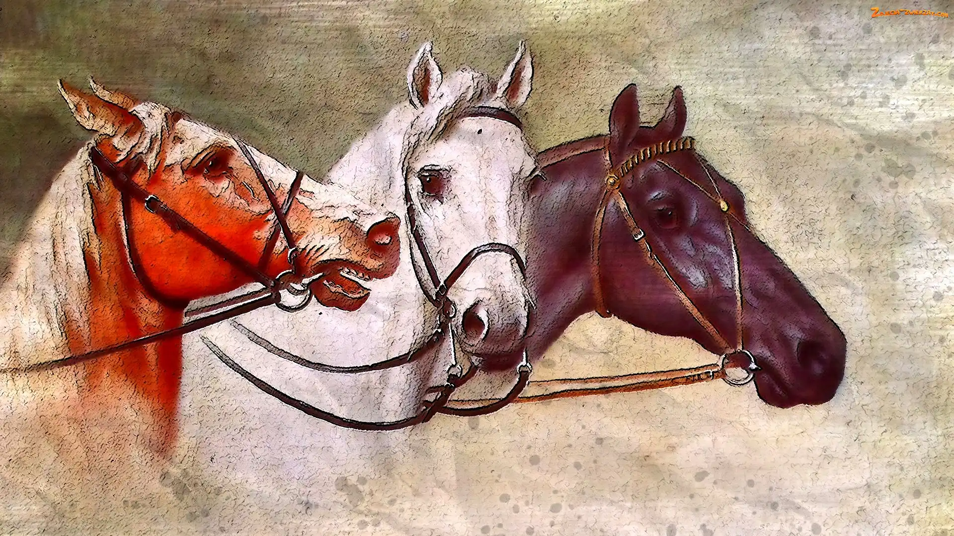 Zdjęcie: Konie, Grafika, Trzy, Głowy