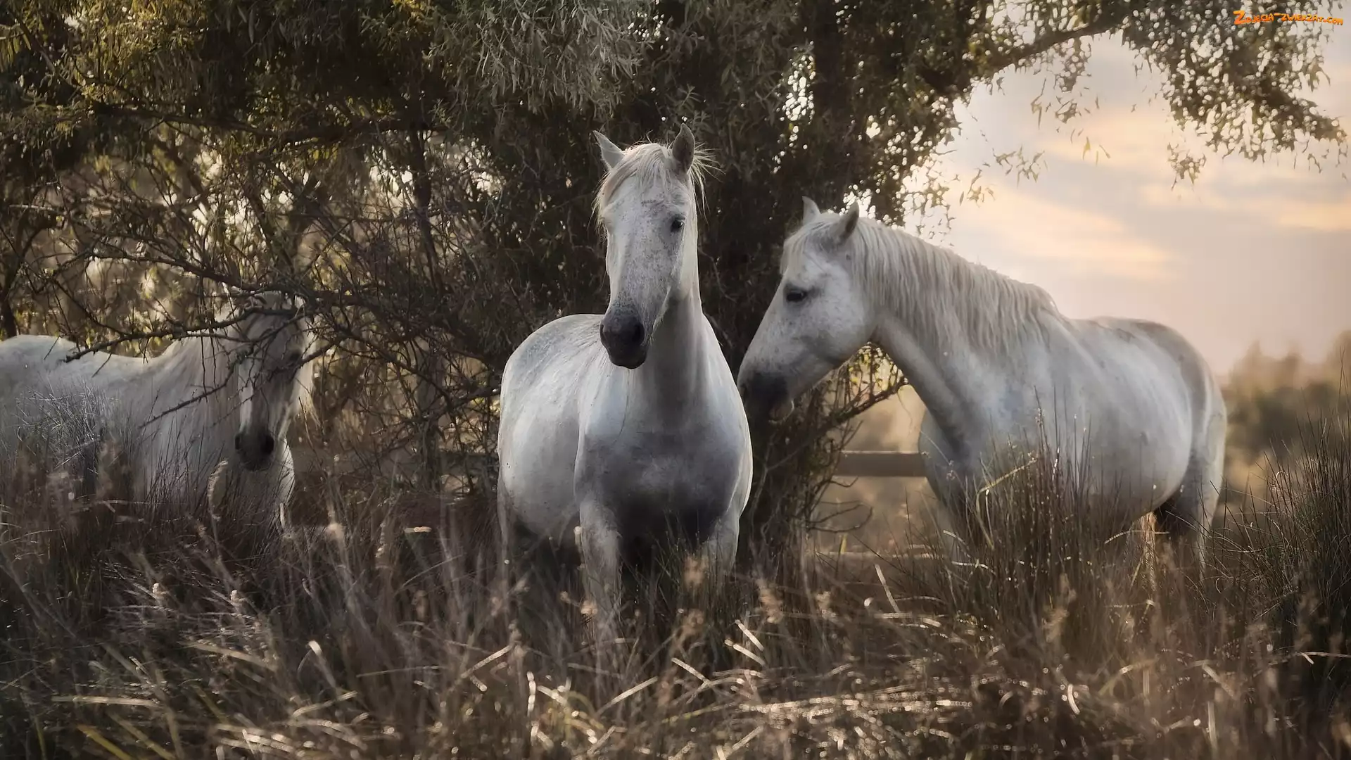Zdjęcie: Konie, Rośliny, Trzy, Drzewo
