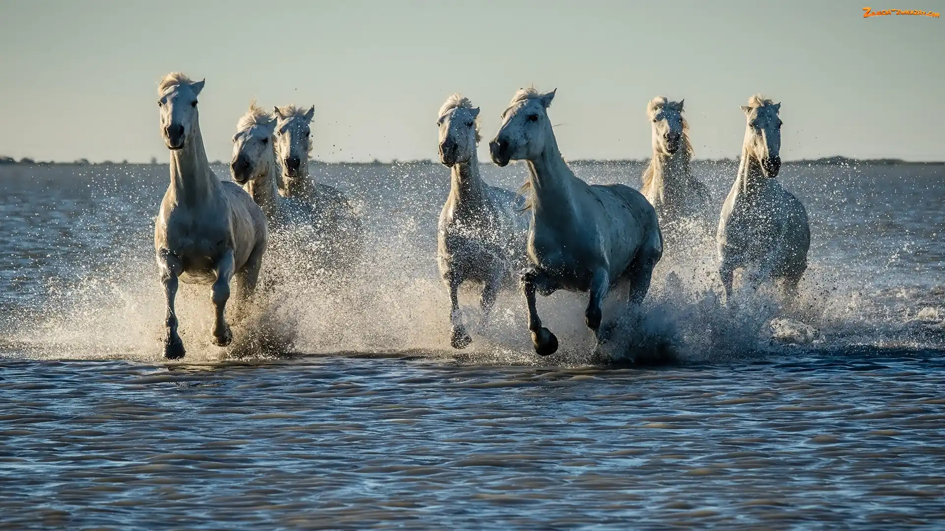 Zdjęcie: Woda, Konie, Bieg