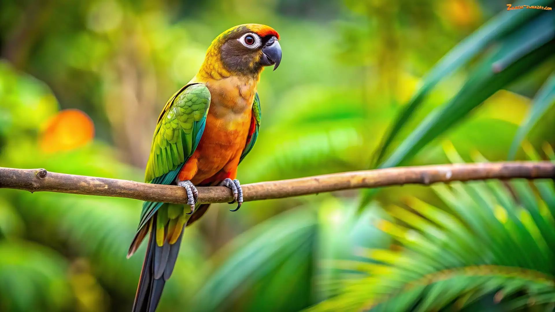 Zdjęcie: Papuga, Konura brązowogardła, Grafika, Gałąź