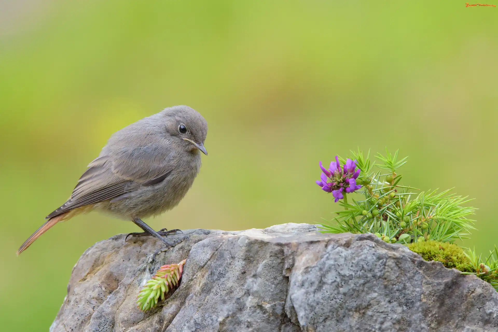 Zdjęcie: Kwiat, Kopciuszek zwyczajny, Szary, Kamień, Fioletowy, Ptak, Samica