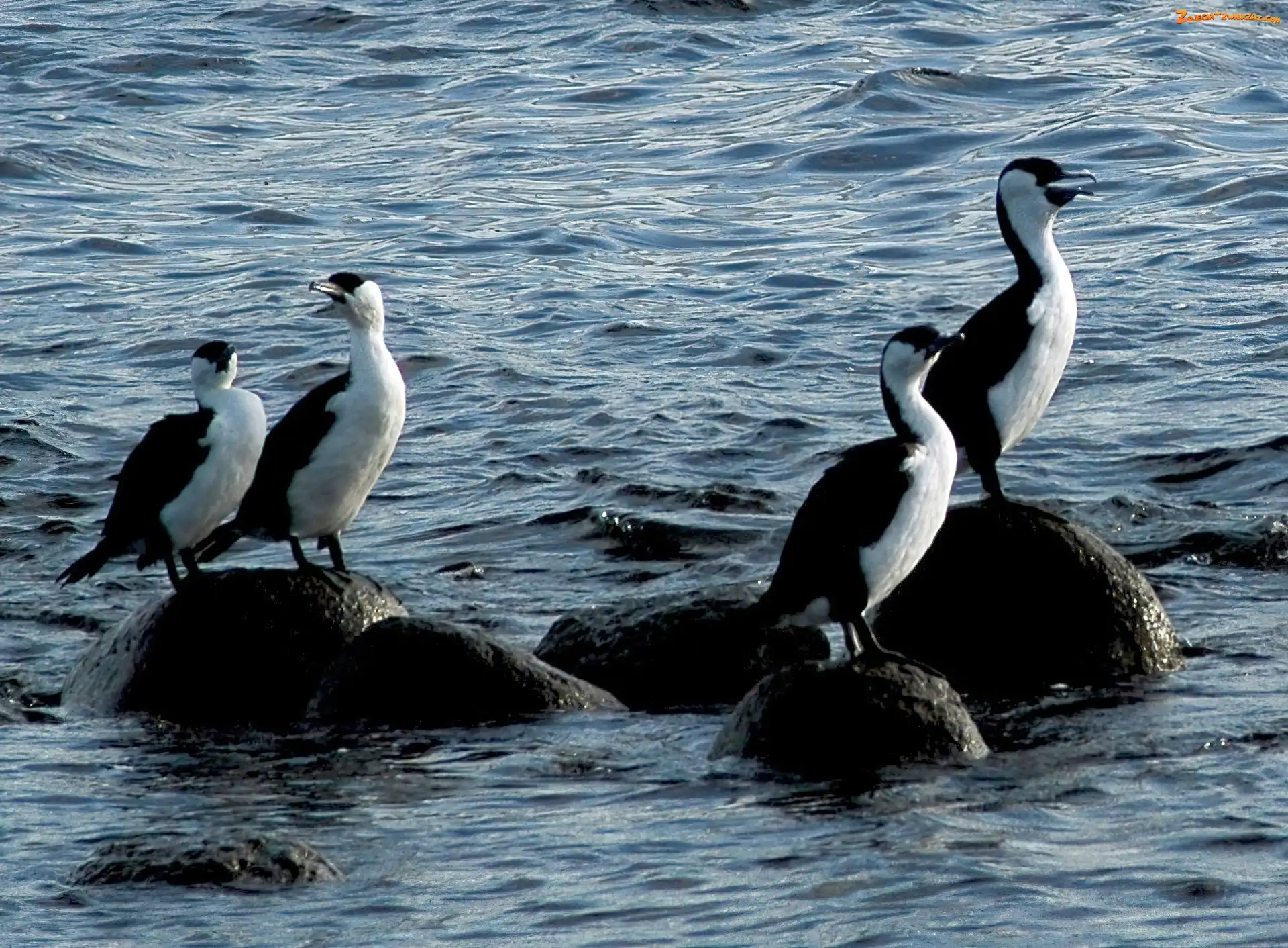 Zdjęcie: Woda, Kormorany, Kamienie