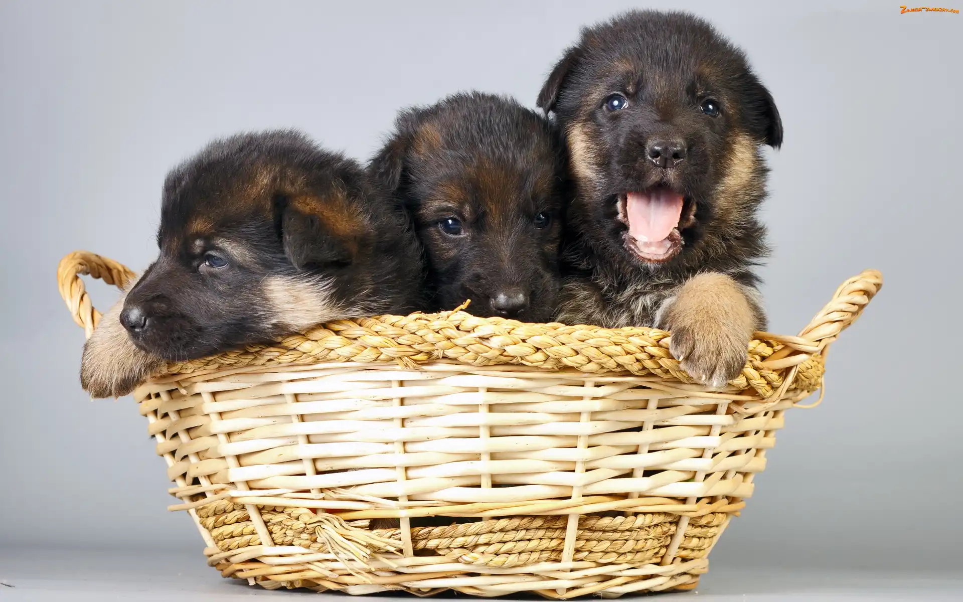 Zdjęcie: Kosz, Niemieckie, Szczeniaczki, Trzy, Owczarki