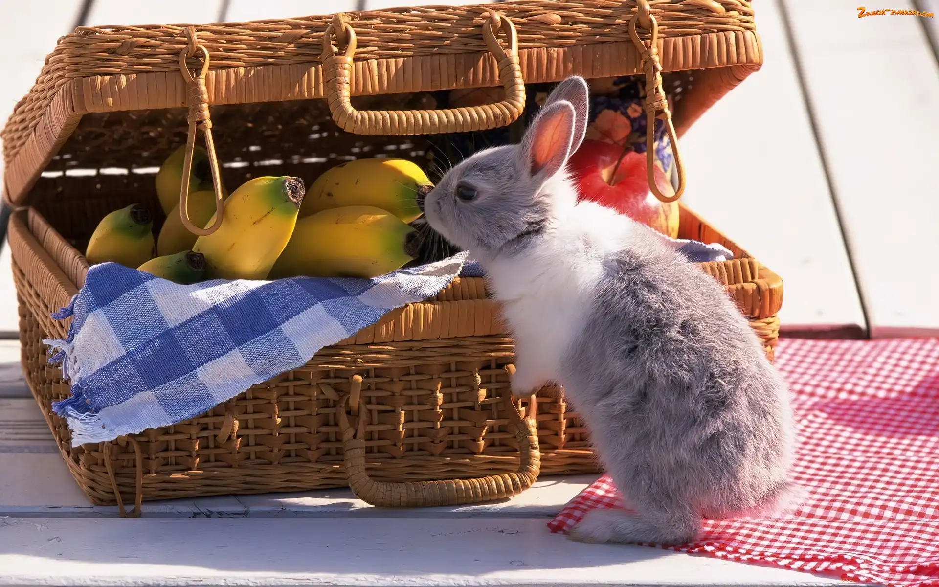 Zdjęcie: Kosz, Owoce, Wiklinowy, Królik