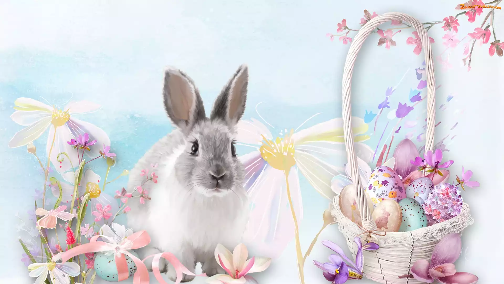 Koszyk, Pisanki, Wielkanoc, Kompozycja, Królik
