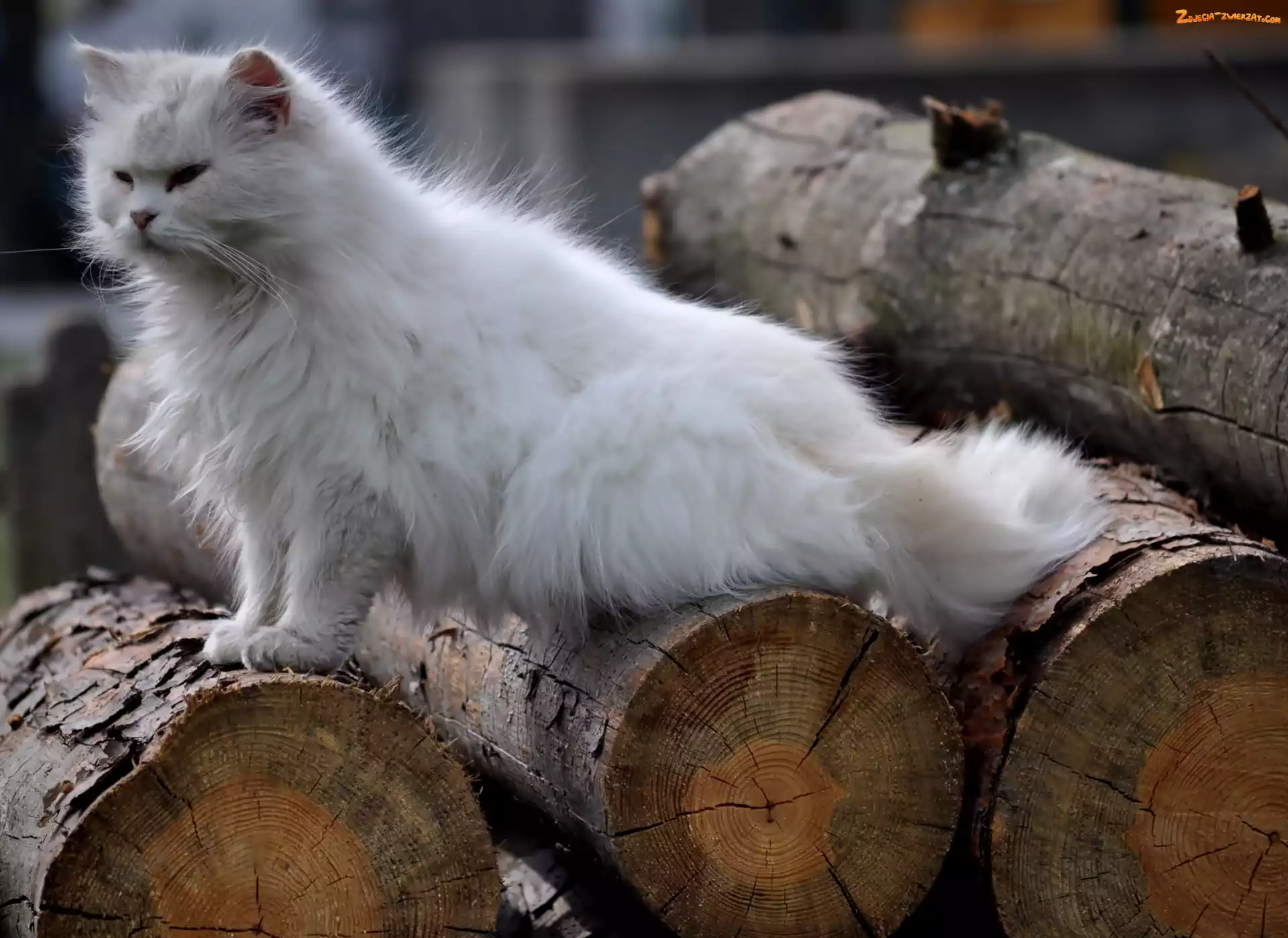 Zdjęcie: Kot, Drzewa, Biały, Kłody